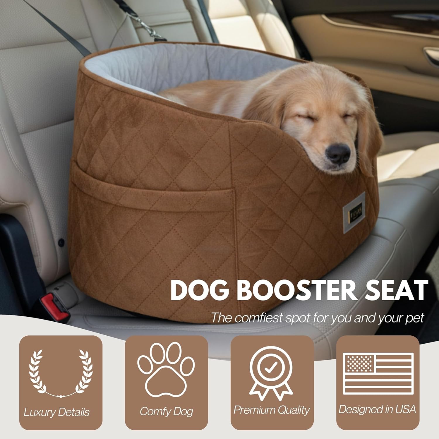 Premium 2-in-1 Dog Car Seat & Home Bed for Small Dogs – Premium Travel Pet Bed with Safety Straps, Stylish Design, Soft Plush Cushion & Secure Portable Comfort – Under 30lbs (Brown)