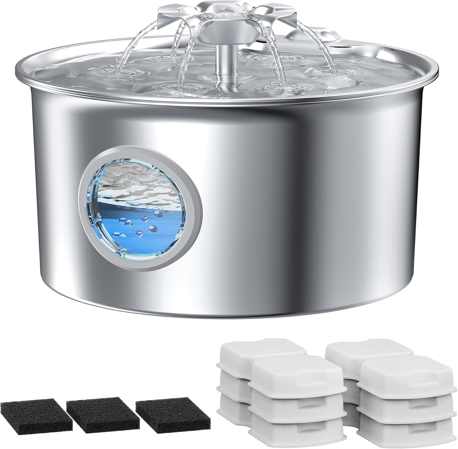 - LED Monitoring & Easy Maintenance: The built-in LED blue light and transparent window let you check water levels at a glance. Disassemble the water fountain for cats in seconds—no tools needed! Dishwasher-safe, parts and a modular design simplify cleaning. Spend more moments connecting with your furry companion