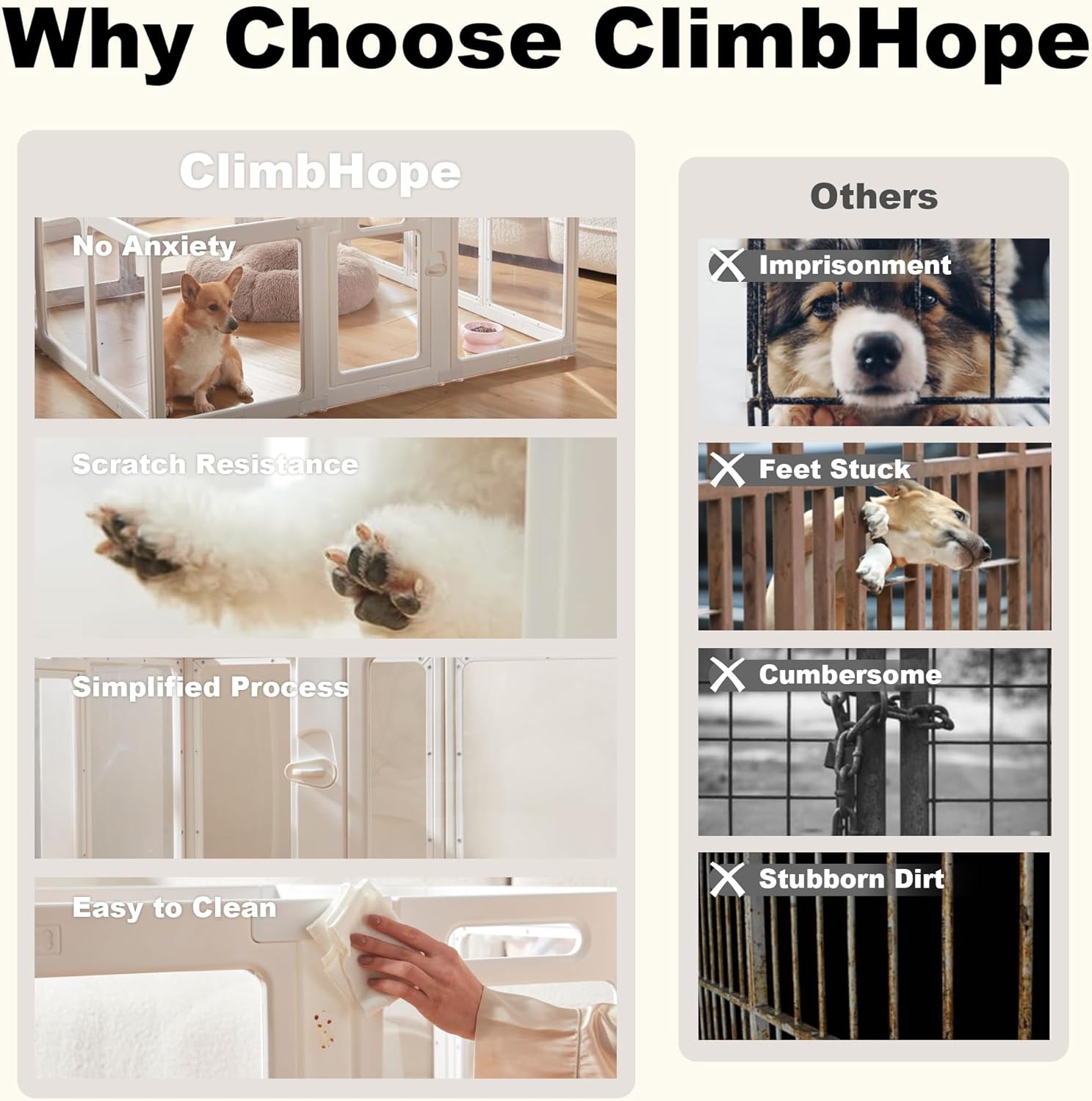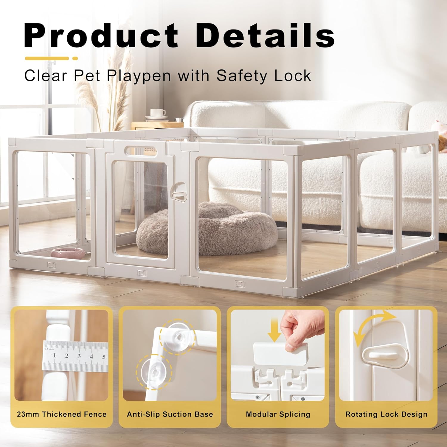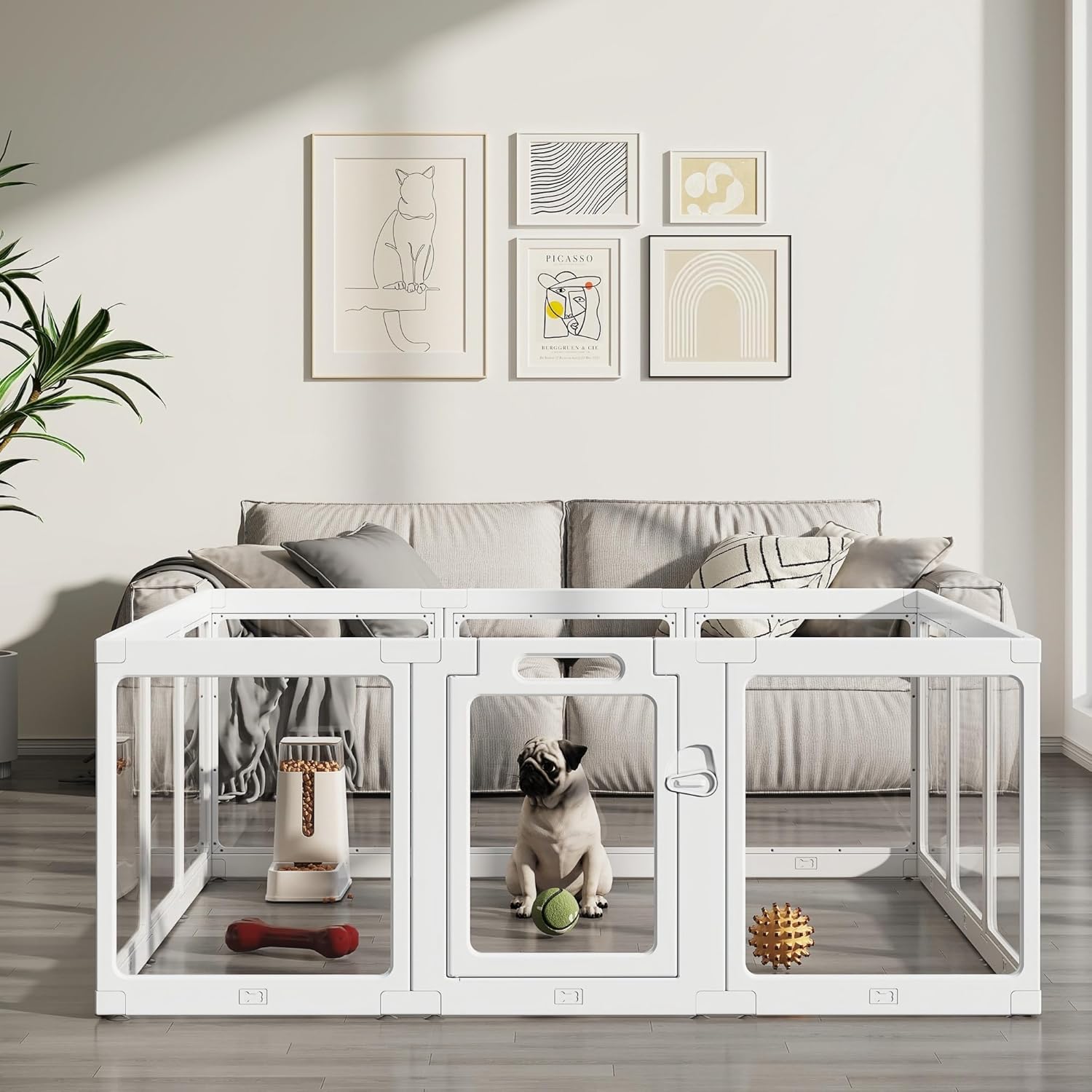- TRANSPARENT & SAFE DESIGN: Our clear acrylic dog playpen features seamless, transparent panels that provide a bright, open environment, reducing stress for pets. Unlike metal bars with risky gaps, the smooth, gap-free design prevents climbing, escaping, or injuries like stuck paws.