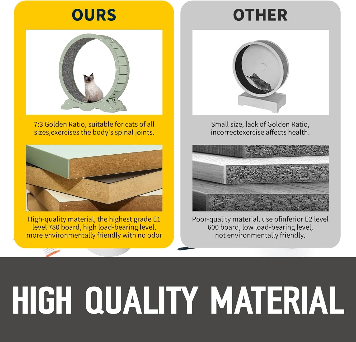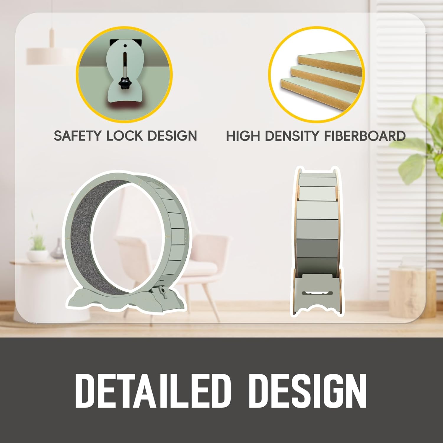 - Latest Cat Running Wheel: Most pet cats are overweight because they stay indoors for a long time and lack exercise. The wheels for indoor cats. Running is the best way to exercise, helping your cat stay physically active and reduce boredom. The Large Cat Running Wheel. A brand new upgrade of our cat wheel, silent and effectively prevents cats from pinching their feet, making it excellent pet furniture