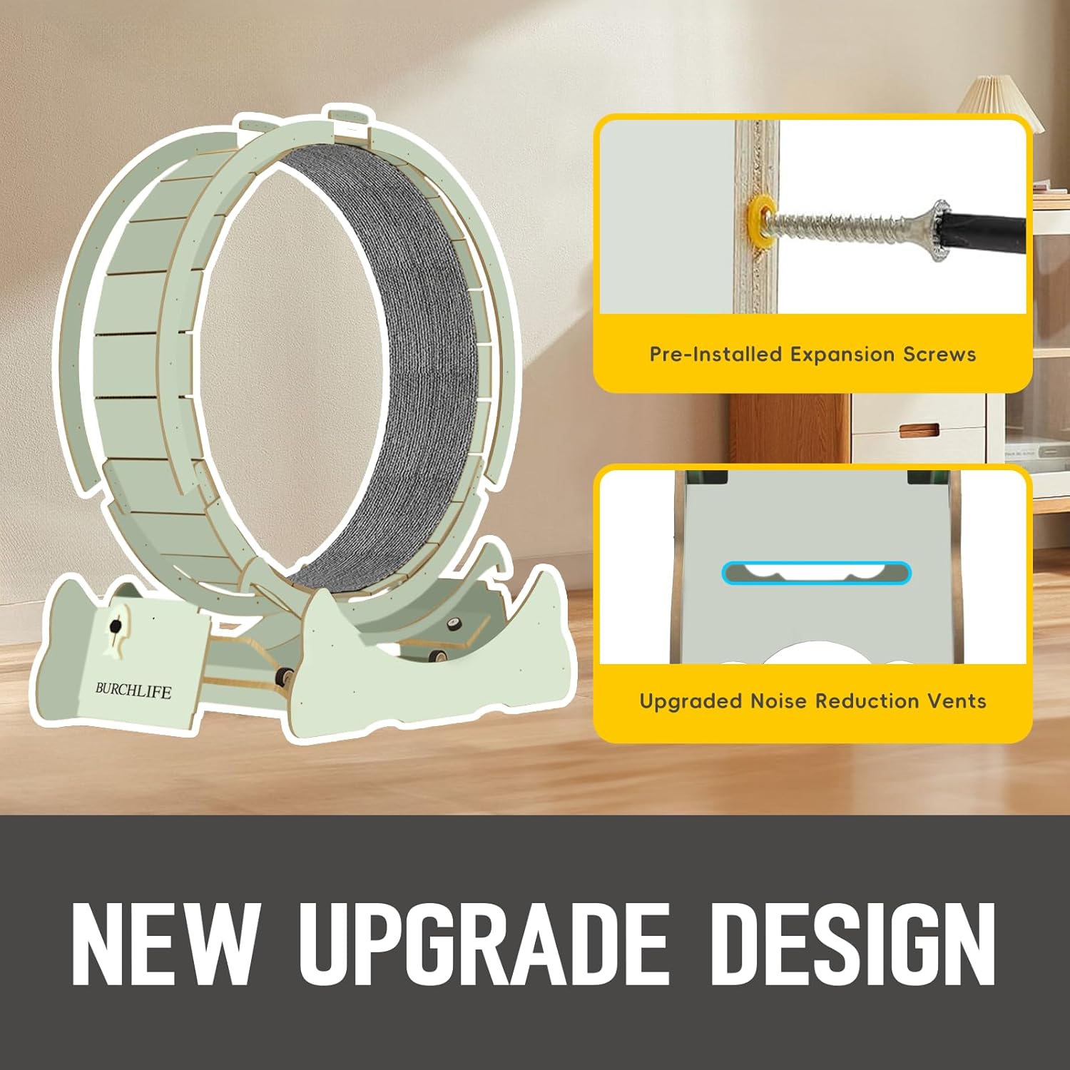 - Cat Exercise Wheel Indoor Effortless Installation: With a 45 inch Large smooth-spinning wheel and sturdy base to prevent slipping, this scratcher can support up to 120 lbs, making it perfect for cats of all sizes. And the cat exercise wheel requires zero tools and only 10 minutes of your time for a hassle-free setup.