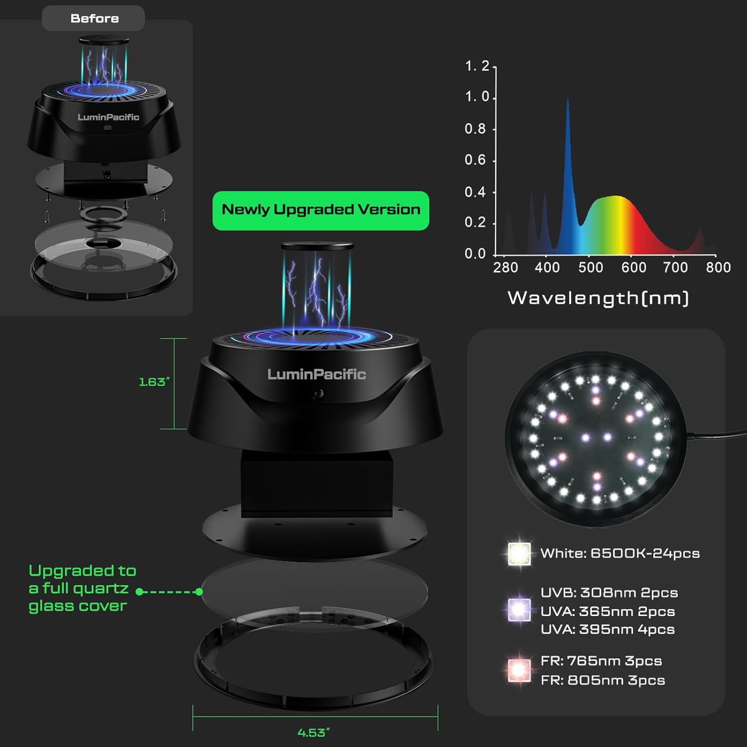 - Energy-Efficient and Long-lasting LED Technology: Our high-quality UVB LEDs have a lifespan of up to 12,000 hours, so replacement is rarely necessary. Our advanced LED technology offers a high light output while consuming very little power, helping you to save money while protecting the environment. We also provide warranty, returns and exchanges service for every LuminPacific consumer.