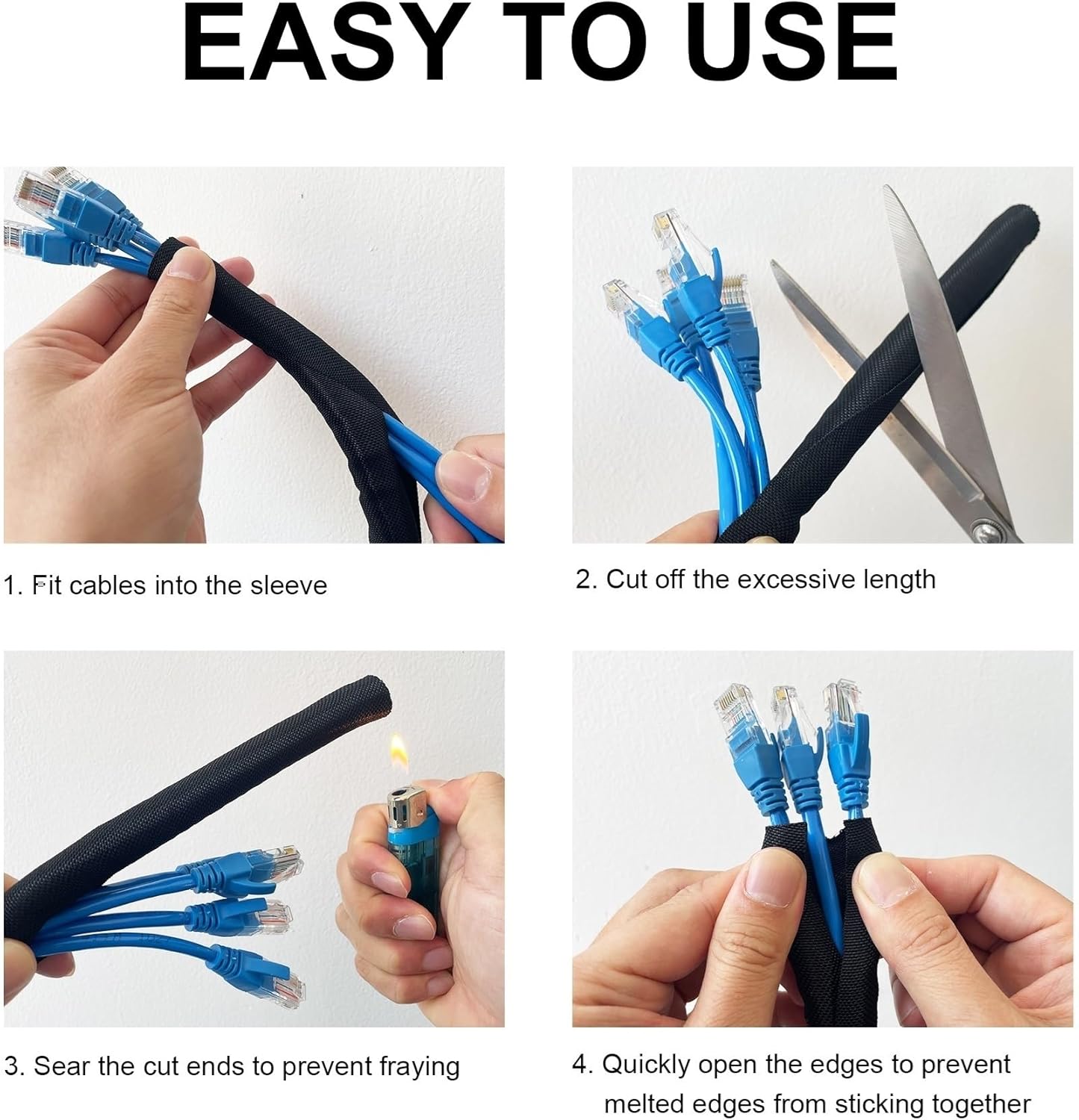 - Easy To Install - Split design, easy to wrap around cords without any hassle and the cord protector can be easily cut to any desired length.