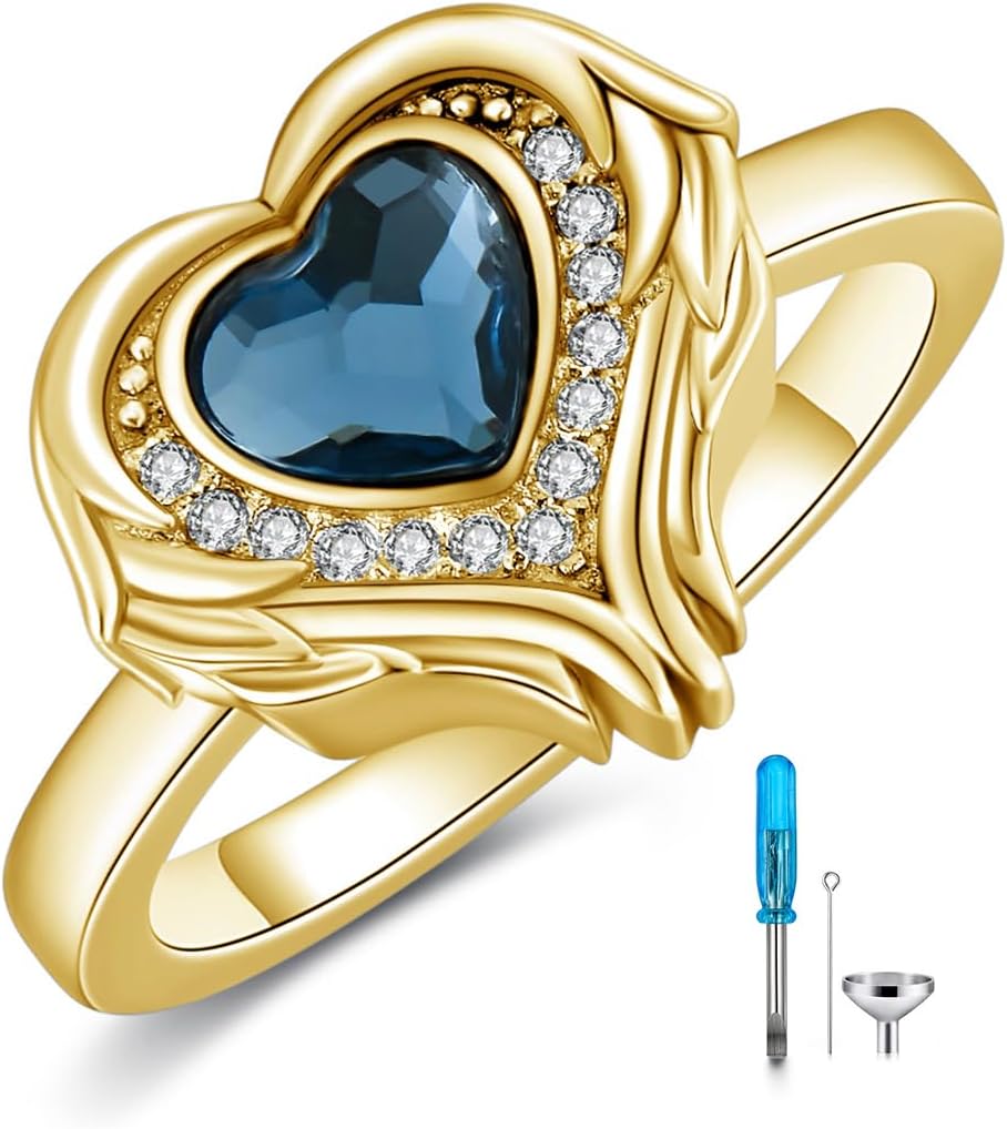 - ♥Design♥ No longer by my side, but my love is always with you and you are forever in my heart. Angel wing urn ring can be customized with any text or name you want, and there are 9 colors heart shape crystals for your choice. Customize this special urn ring will help reduce sorrow and keep the memories of your loved ones in your heart forever