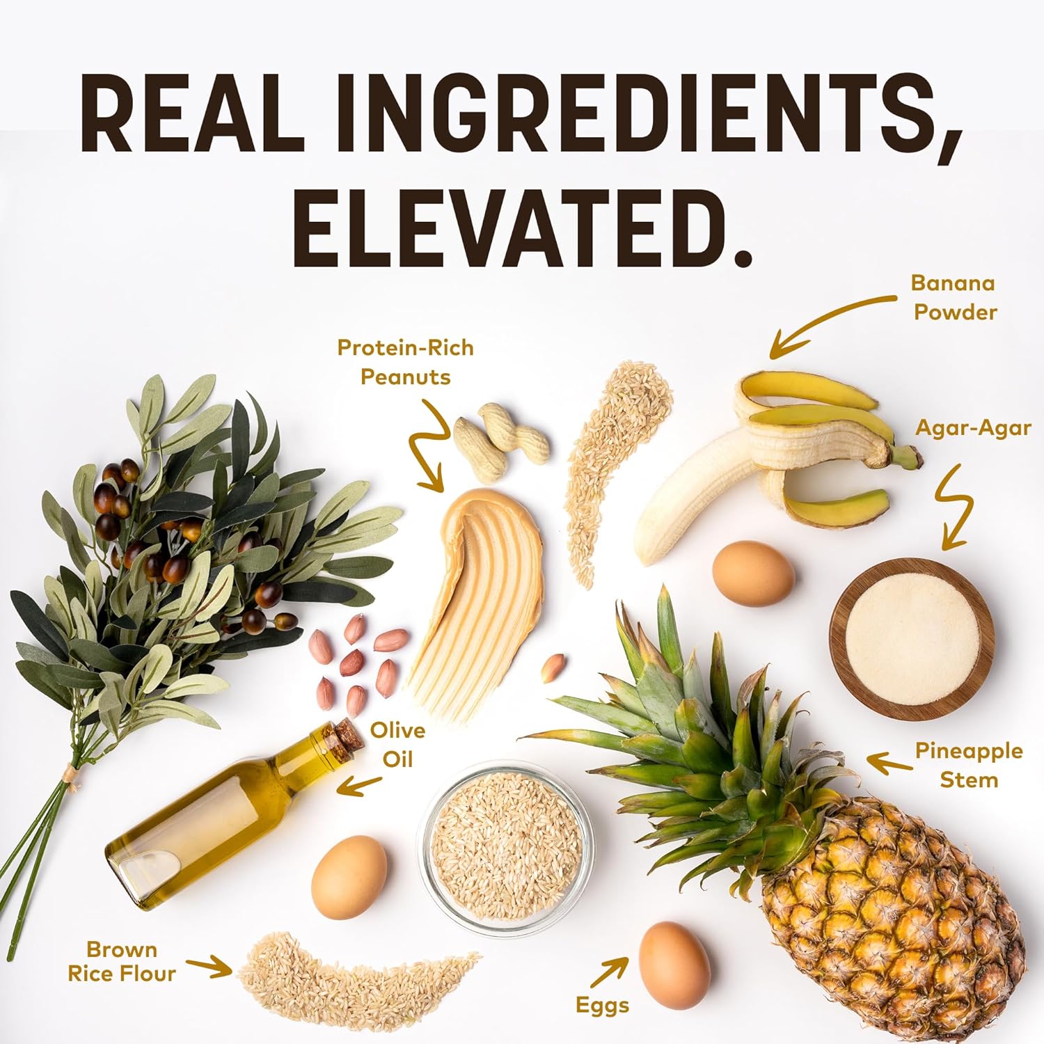 - MADE WITHOUT: No bleach. No synthetics. No foul odor. Each No-Hide starts with simple ingredients - brown rice flour, agar-agar, eggs, olive oil, banana powder, & pineapple stem. After adding a flavorful protein, they're baked to perfection