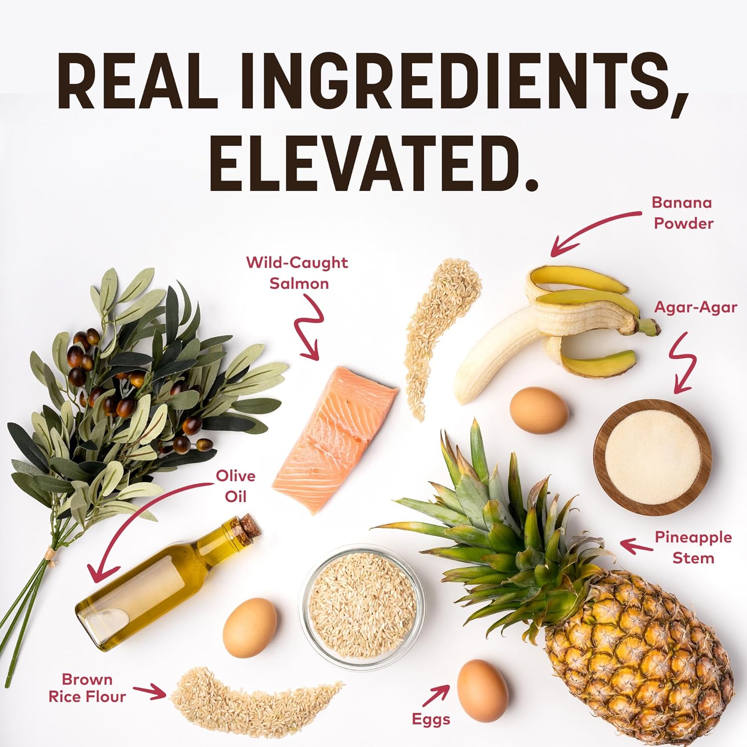 - MADE WITHOUT: No bleach. No synthetics. No foul odor. Each No-Hide starts with simple ingredients - brown rice flour, agar-agar, eggs, olive oil, banana powder, & pineapple stem. After adding a flavorful protein, they're baked to perfection