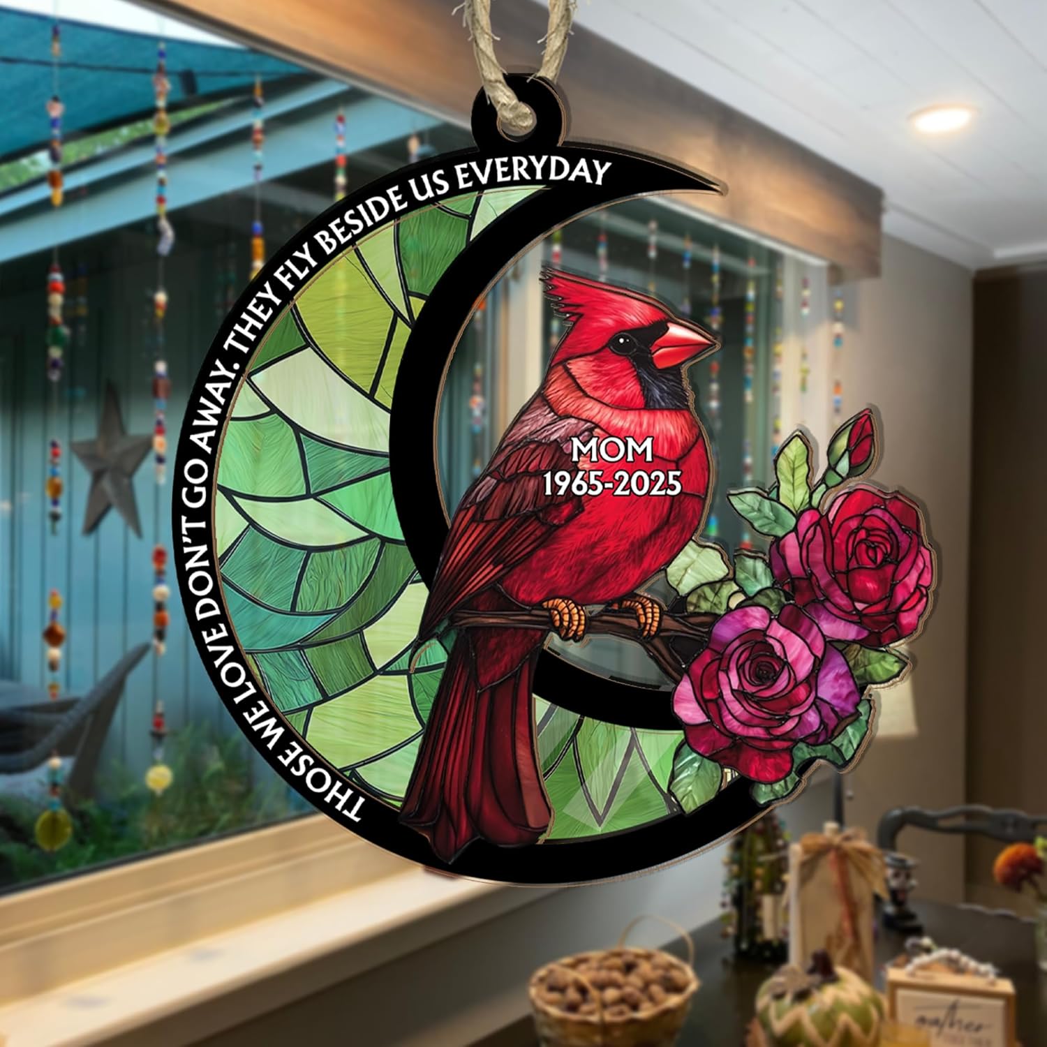 Personalized Dad Mom Cardinal Suncatcher Ornament - Loving Memory, Remembrance Hanging Decor, Bereavement Condolence Gifts, Loss of Family Member Loved One, Those We Love Don't Go Away Ornaments