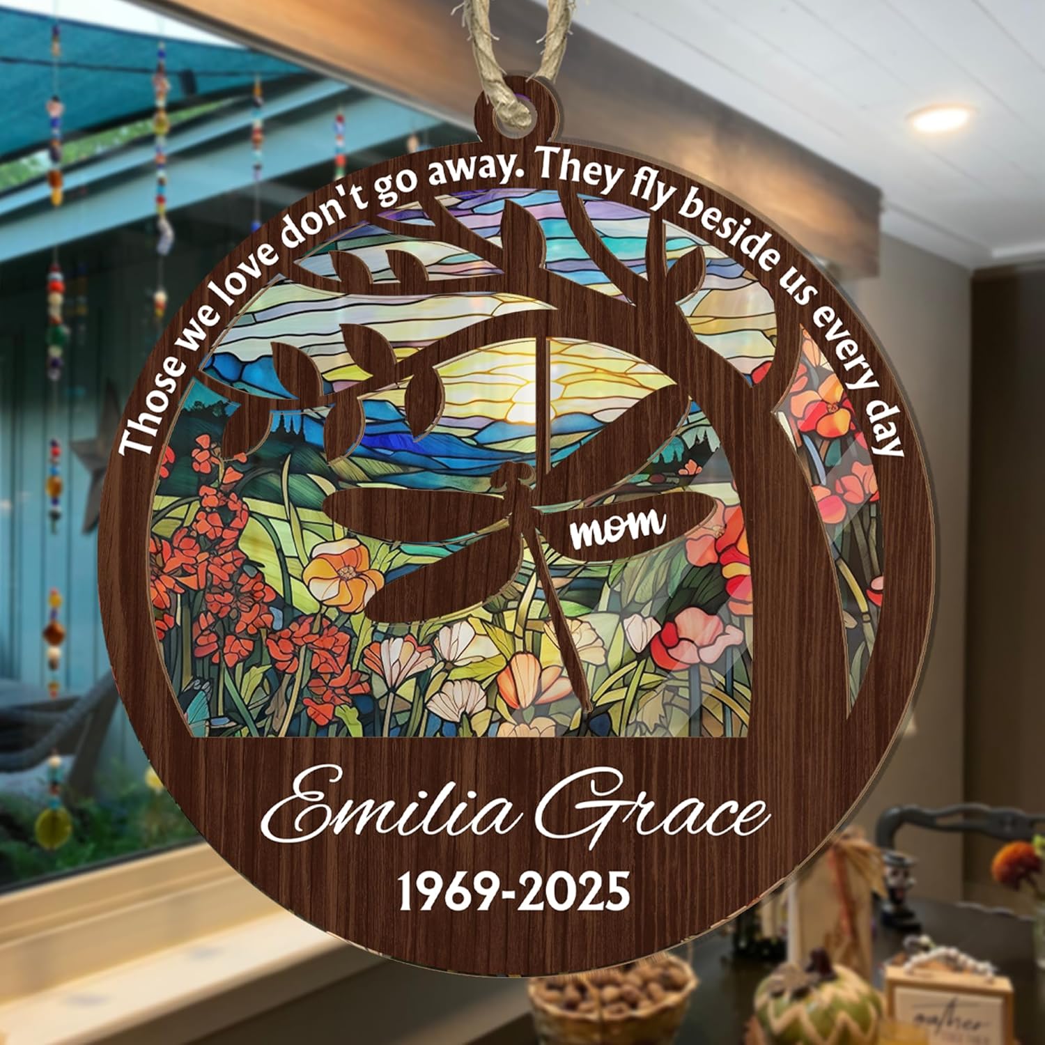 Personalized Dad Mom Dragonfly Suncatcher Ornament - Loving Memory, Remembrance Hanging Decor, Bereavement Condolence Gifts, Loss of Family Member Loved One, Those We Love Don't Go Away Ornaments