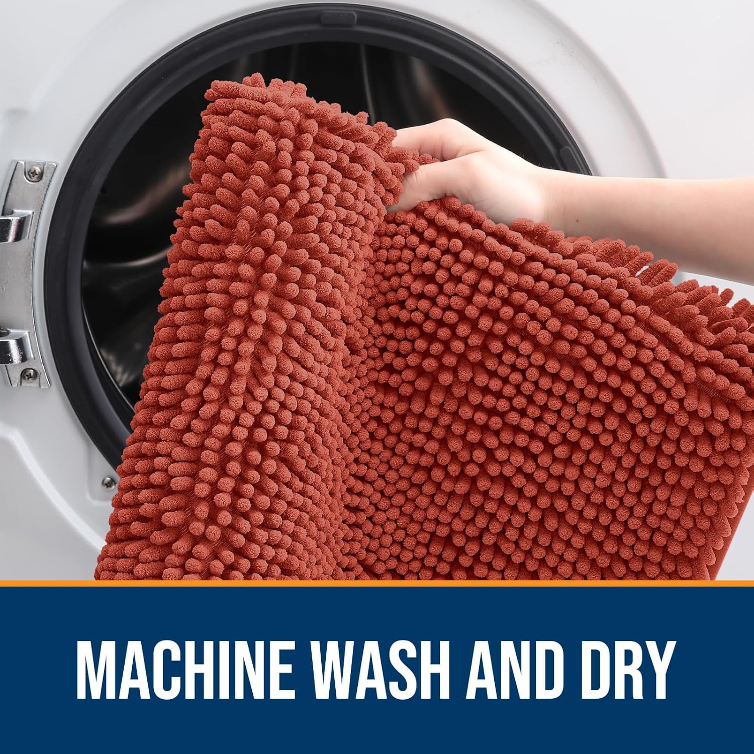 OLANLY Dog Door Mat for Muddy Paws 30x20, Absorbs Moisture and Dirt, Absorbent Non-Slip Washable Doormat, Quick Dry Chenille Mud Mat for Dogs, Entry Indoor Entryway Carpet for Inside Floor, Maple Red