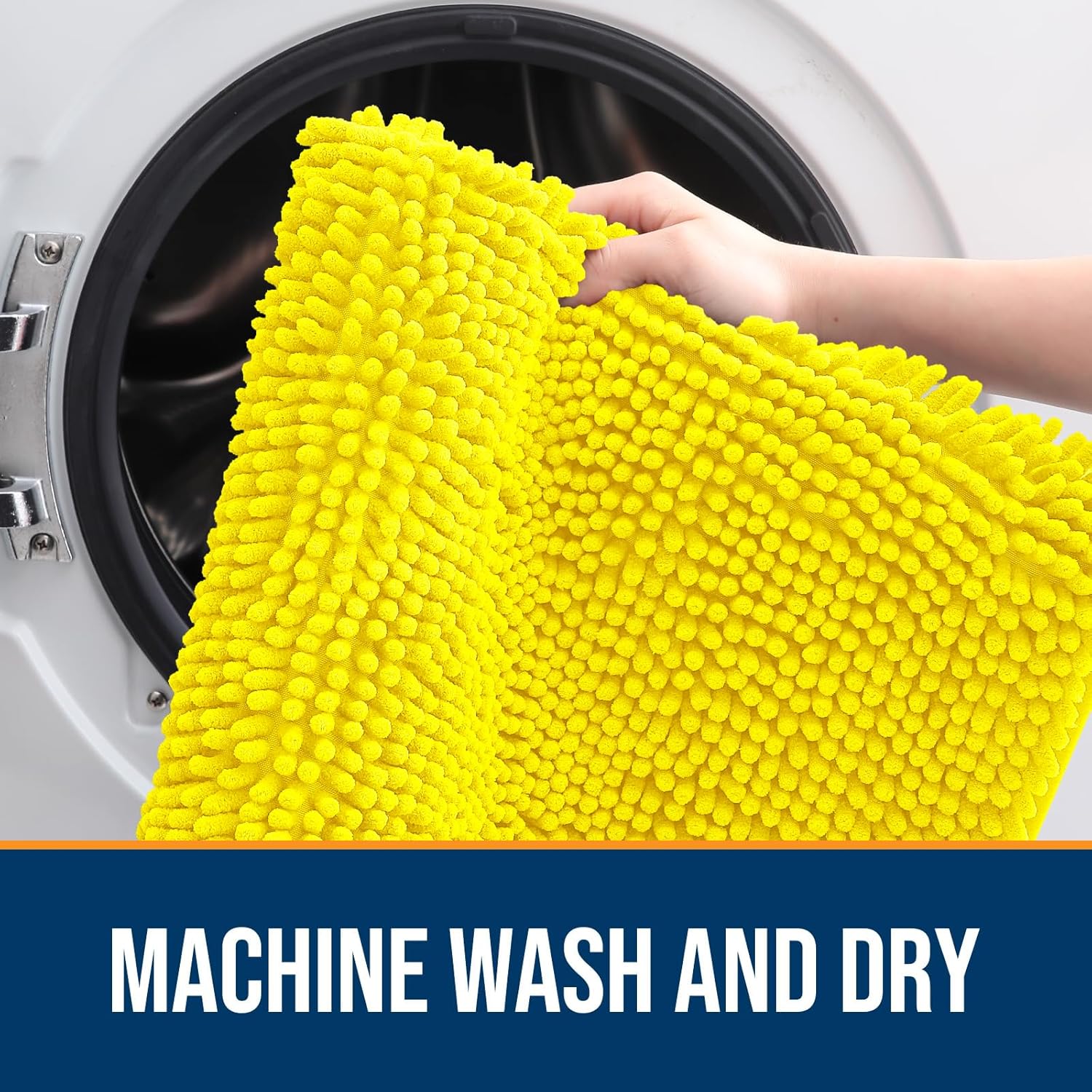 OLANLY Dog Door Mat for Muddy Paws 44x24, Absorbs Moisture and Dirt, Absorbent Non-Slip Washable Doormat, Quick Dry Chenille Mud Mat, Entry Indoor Entryway Carpet for Inside Floor, Lemon Yellow