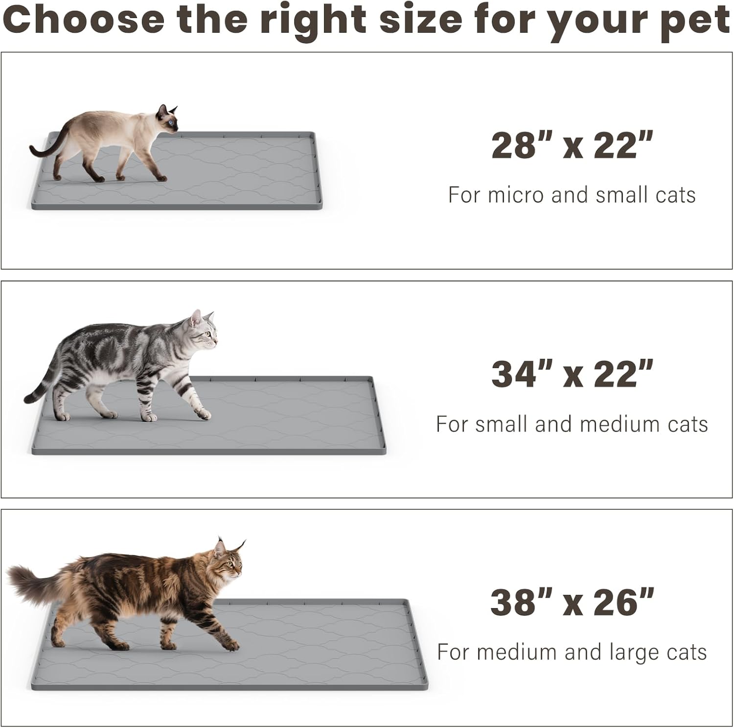 Cat Mat for Litter Box, 34" X 22" Large Silicone Cat Litter Trapping Mat, Easy Clean for Scatter Control, Soft on Kitty Paws, Waterproof, Urine-Proof, Non-Slip Kitty Litter Mat for Floor, Gray