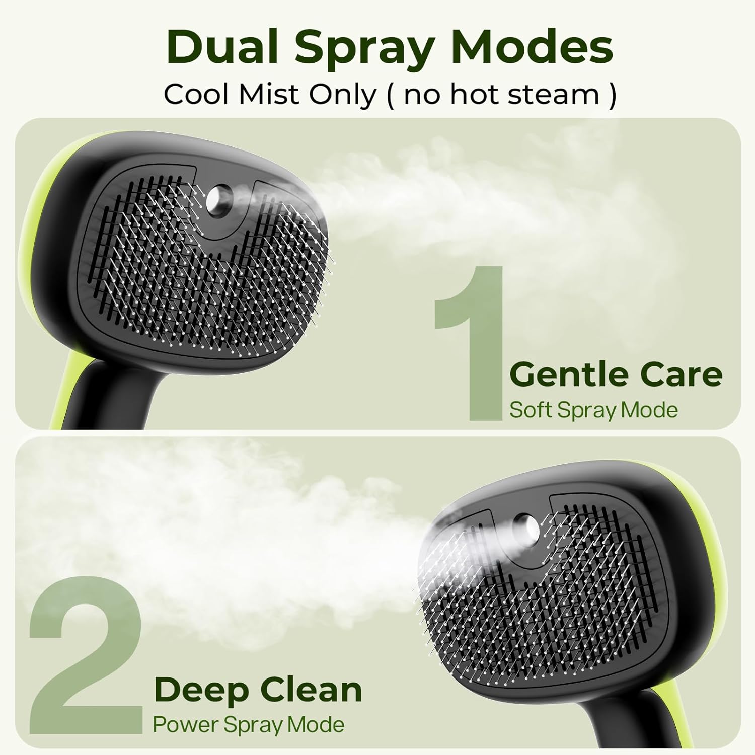 - EFFORTLESS GROOMING, INSTANT SHINE - Our steam cat brush harnesses deep-steam technology to gently release moisture, soften tough knots, and tame static & flyaways while delivering essential hydration for a smoother, shinier coat. Switch between two specialized modes: Power Mist for deep cleaning or soft mist for daily gentle care. For all coats – gentle on short hair, effective on thick fur, for a shiny, tangle-free finish.