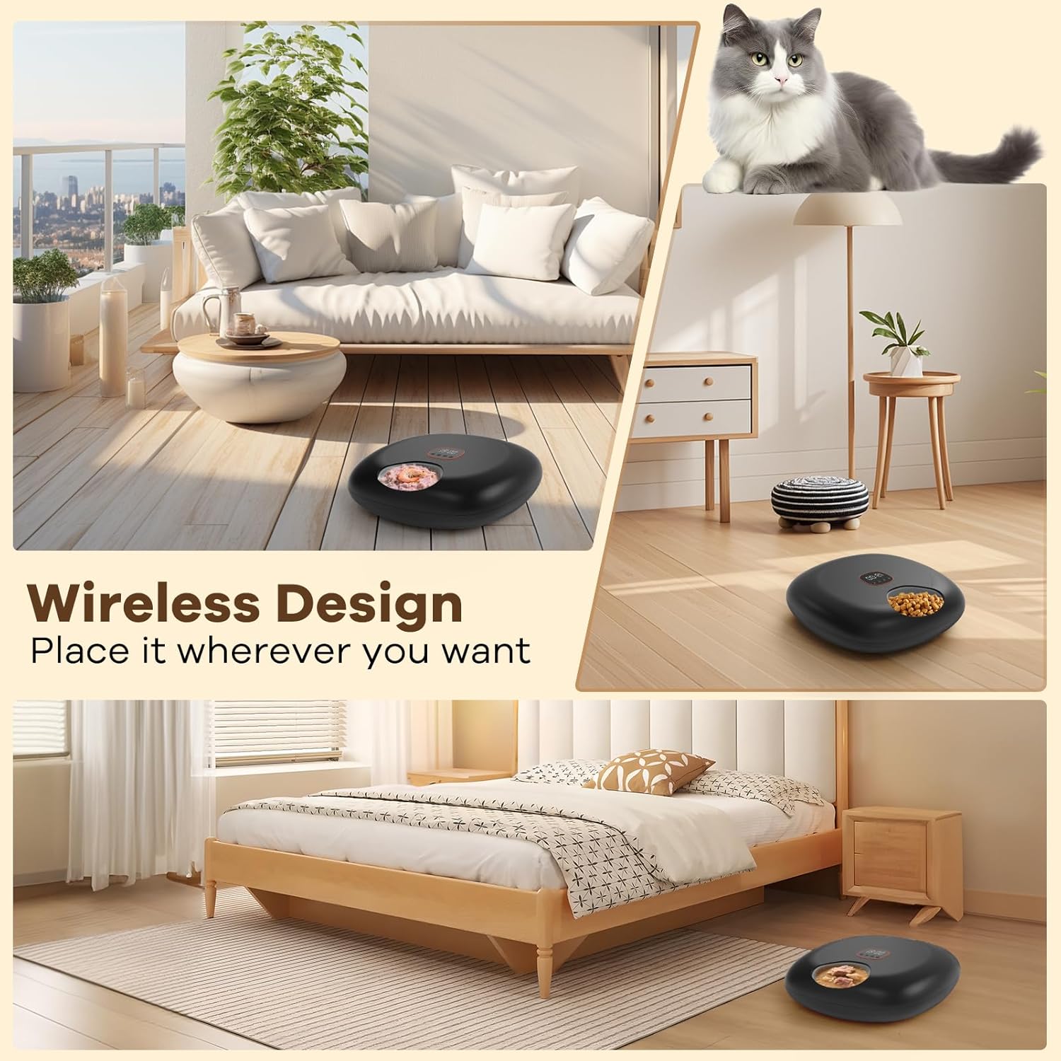 Automatic Cat Feeder Wireless, Sharper Image Auto Cat Food Dispenser for Wet Food with 2 Ice Packs, Rechargeable Auto Feeder for Cats with Programmable Timer Low Battery Indicator, Black