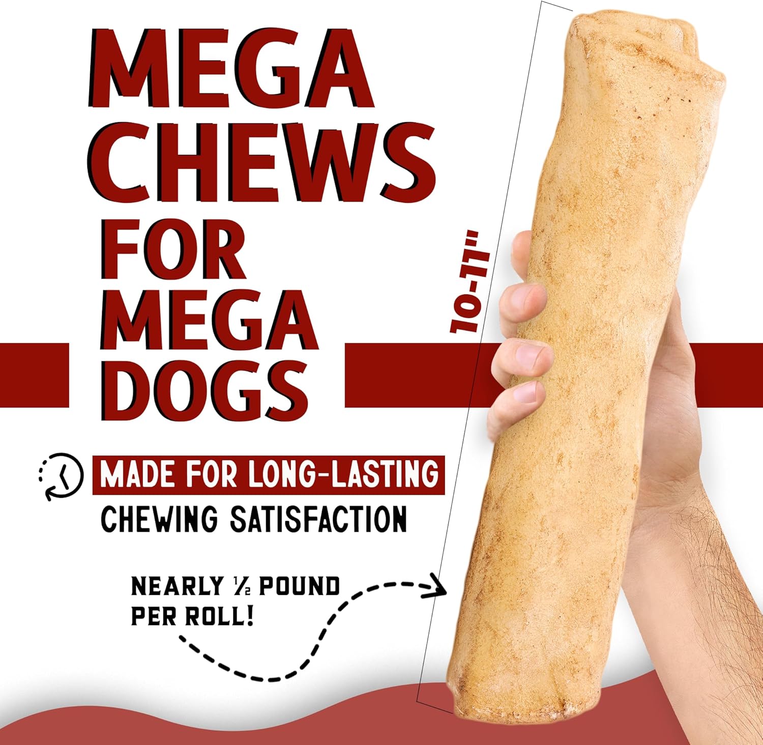 Canine Chews 10-11" Beef-Basted MEGA Retriever Rolls (10 Pack) Natural Rawhide for Big Dogs - Long-Lasting Dog Chew Treats for Aggressive Chewers - Odor-Free - Extra-Large