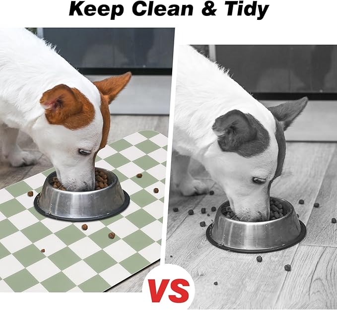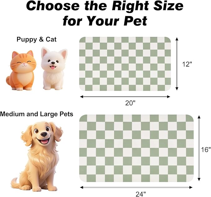 Checkered Pet Feeding Mat, Absorbent Dog Mat for Food and Water Bowls Dispenser 16" x 24" Green