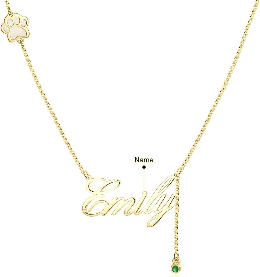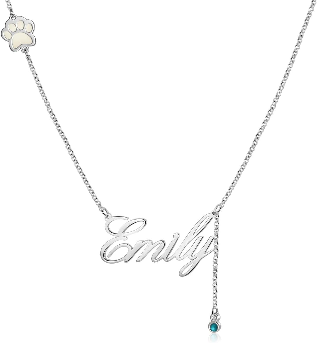 Customized Paw Print Necklace Personalized Pet Name Necklace Custom Engraved Dog Cat Paw Pendant Necklace Pet Memorial Gift for Pet Lovers