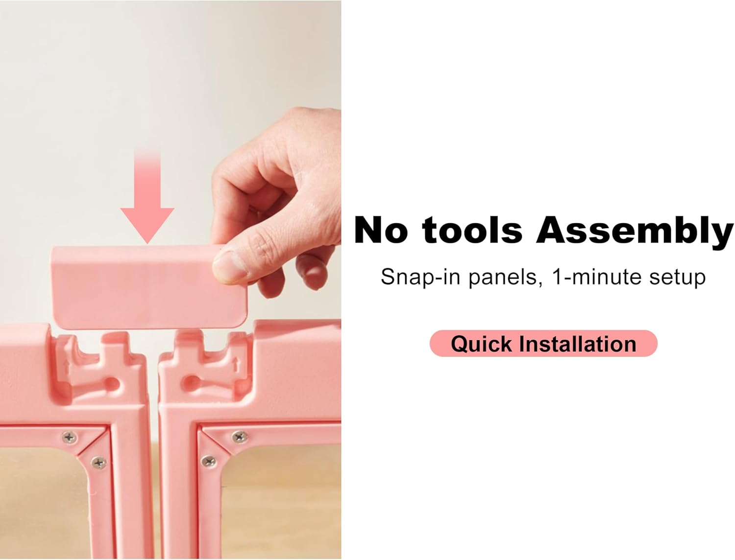 - EASY ASSEMBLE & PORTABLE: This modular puppy playpen snaps together in minutes with a simple hand-tap system—zero tools, screws, or bolts required. Add extra panels to enlarge the enclosure as your pet grows or for multi-pet households.