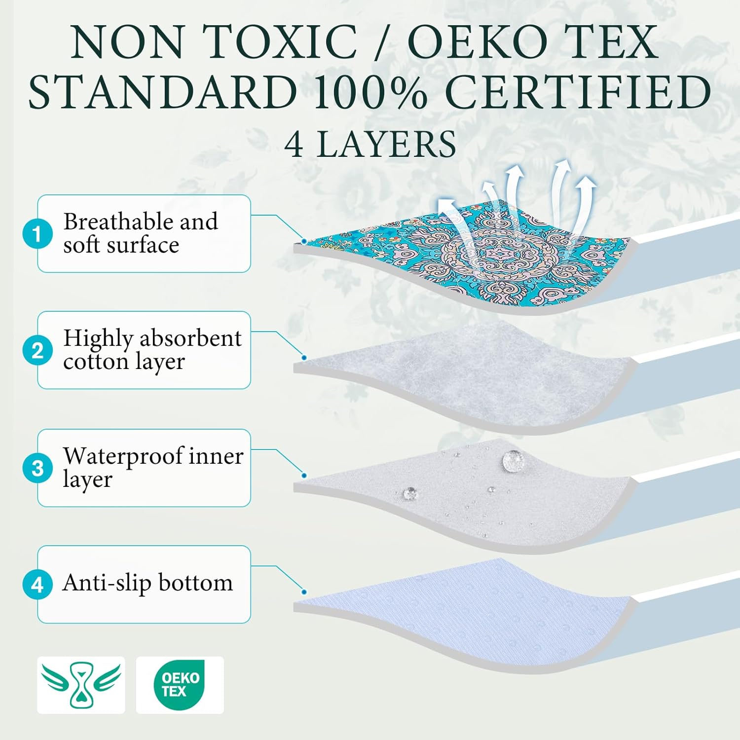 - ABSORBENCY AND BREATHABLE: Our reusable dog training pads are made from multi-layer materials that provide excellent absorbency and prevent leaks, keeping your floors and furniture clean and dry. Plus, they're suitable for providing comfort to your pets and can be used as rest mats or as kennel/food mats