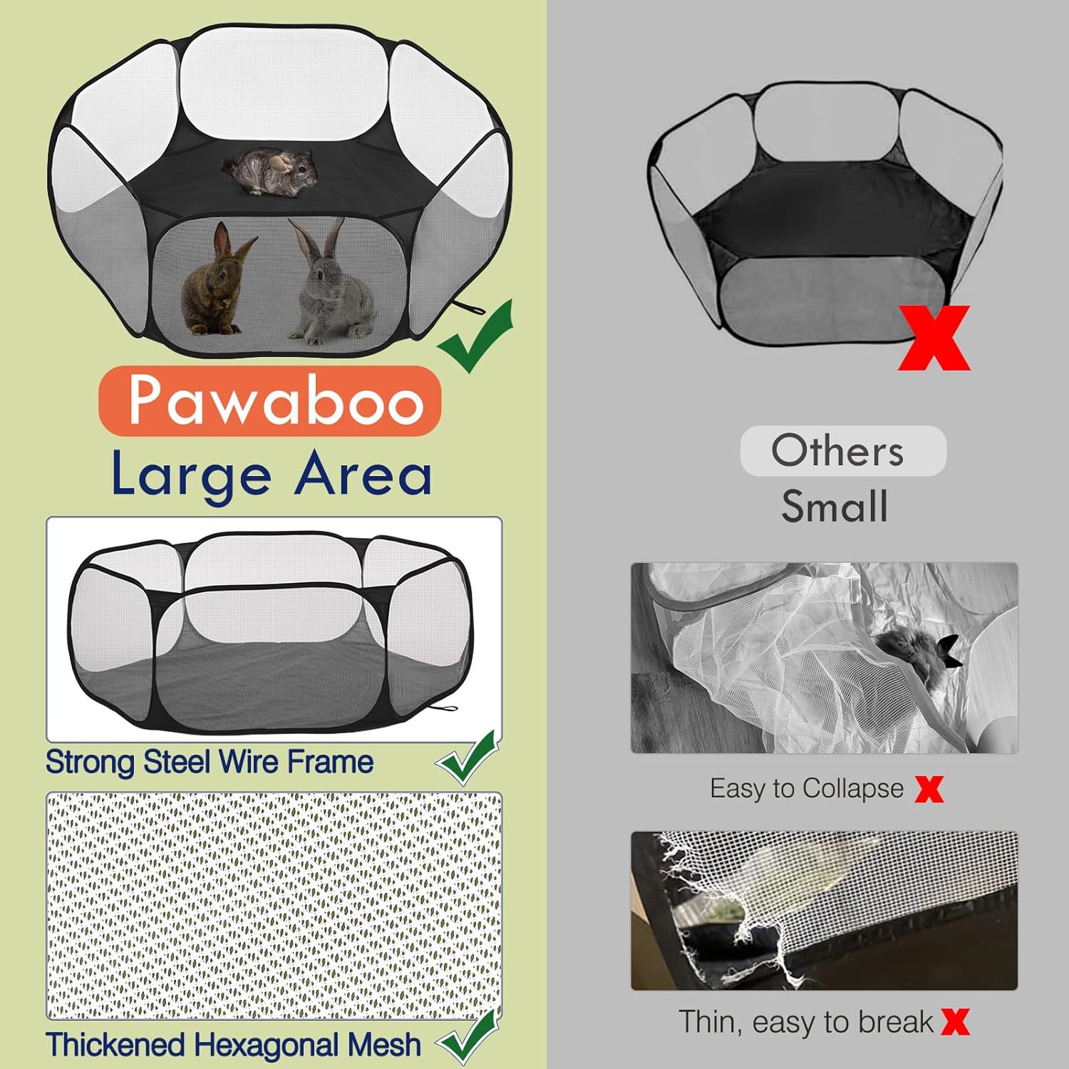 Pawaboo Small Animals Playpen, Waterproof Small Pet Cage Tent with Strong Steel Wire Frame, Portable Outdoor Yard Fence for Chick/Kitten/Puppy/Guinea Pig/Rabbits/Hamster/Chinchillas, Black