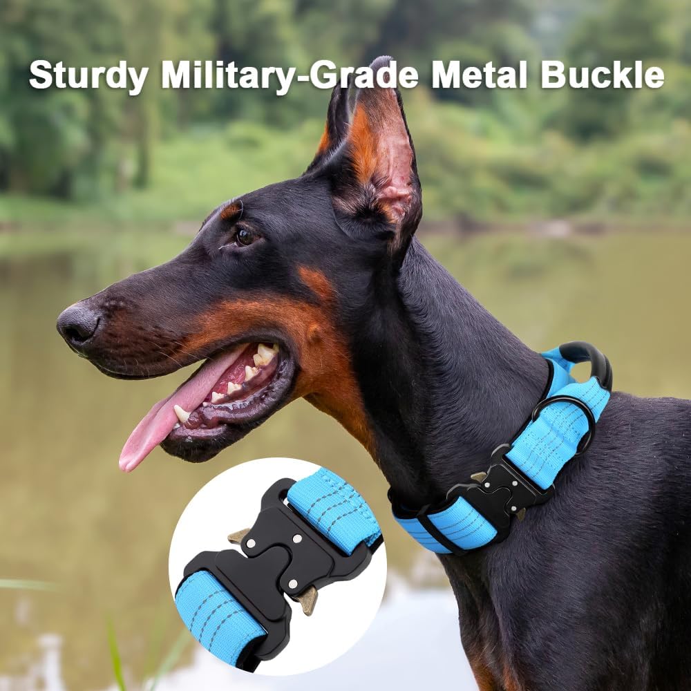 - DESIGNED FOR LARGER BREEDS: Featuring 1000D nylon webbing and a sturdy metal buckle, it ensures the collar can withstand the impact from even the strongest dogs.Perfect for medium to large dogs.