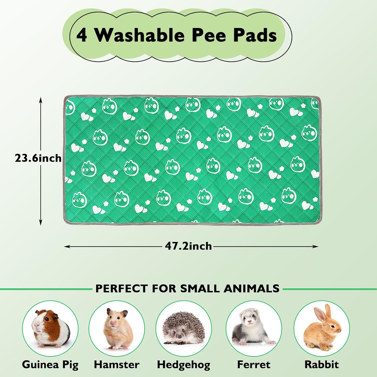 - Multi Purposes: This Washable Pee Pad is perfect for guinea pigs, rats, hamsters, hedgehogs, chinchillas, ferrets, bunnies, rabbits and so on. Placing this absorbent pee pad directly on the floor, sofa, car seat, bed or cage will help keep your pet's feet clean and dry;