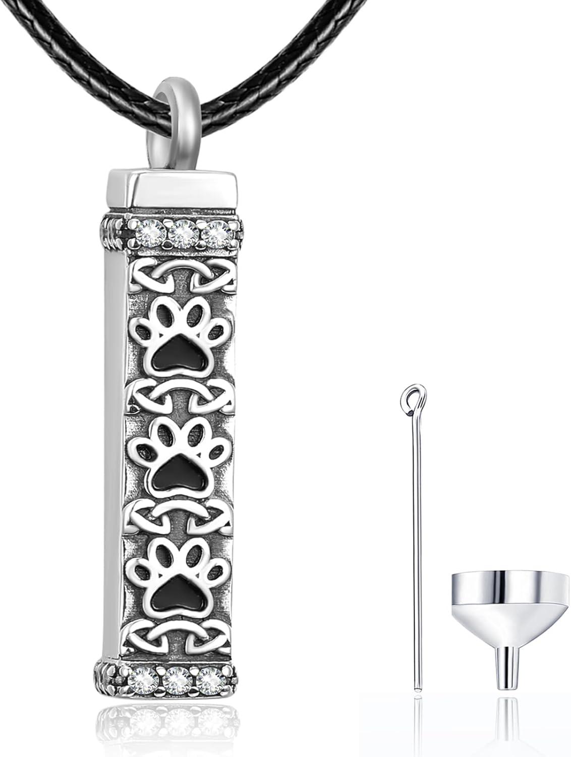 - 【GIFT】:We hope that this pet paw print cremation urn necklace can bring you comfort, perfect to memorialize your furry friend forever. It is a fashion and unique gift for daughter, niece, son, mom, dad, lover, sister, brother, friend, aunt, uncle etc. Meaningful pet ashes keepsake Jewelry.