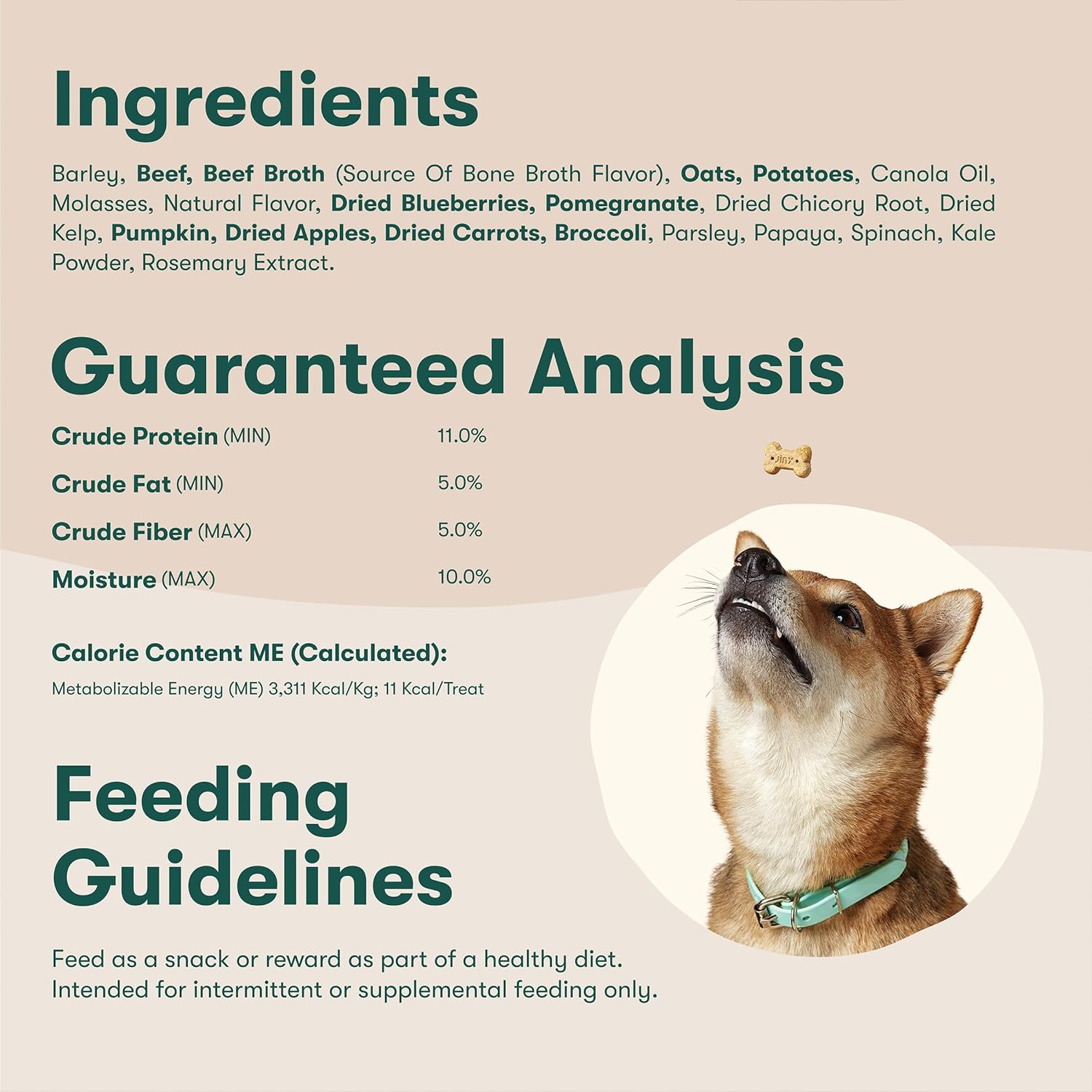 Jinx Oven-Baked Beef Bone Broth Mini Biscuit Dog Treats - Crunchy, All Natural, Superfood-Rich with Grass-Fed Beef, Dog Biscuits for Puppies, Adults & Seniors - 32oz