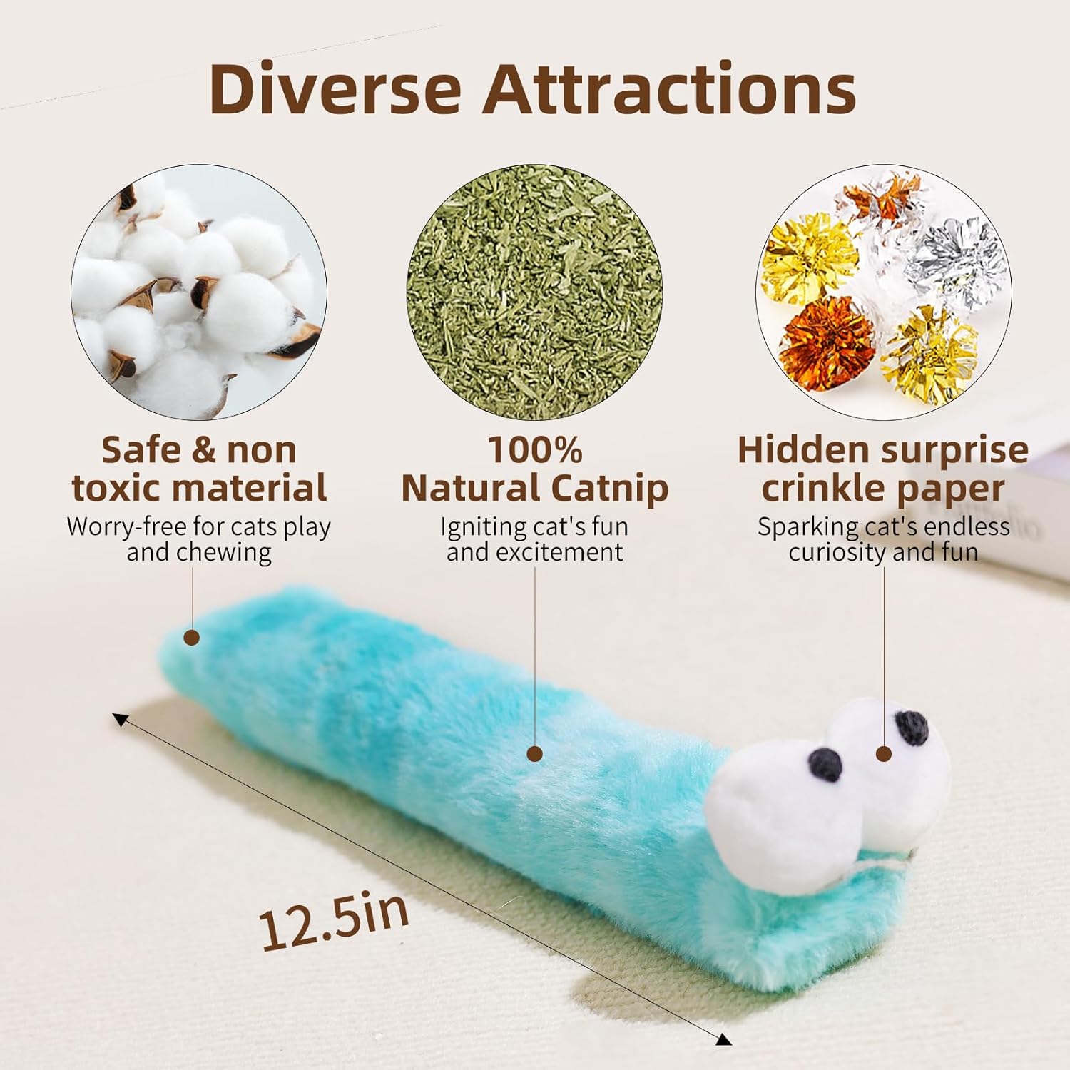 - Cute caterpillar-shaped:This cat toy designed with big, expressive eyes and soft, fluffy fur, providing a playful experience for your cat. It’s like they’re frolicking in the grass, pouncing on a caterpillar, sparking endless fun.
