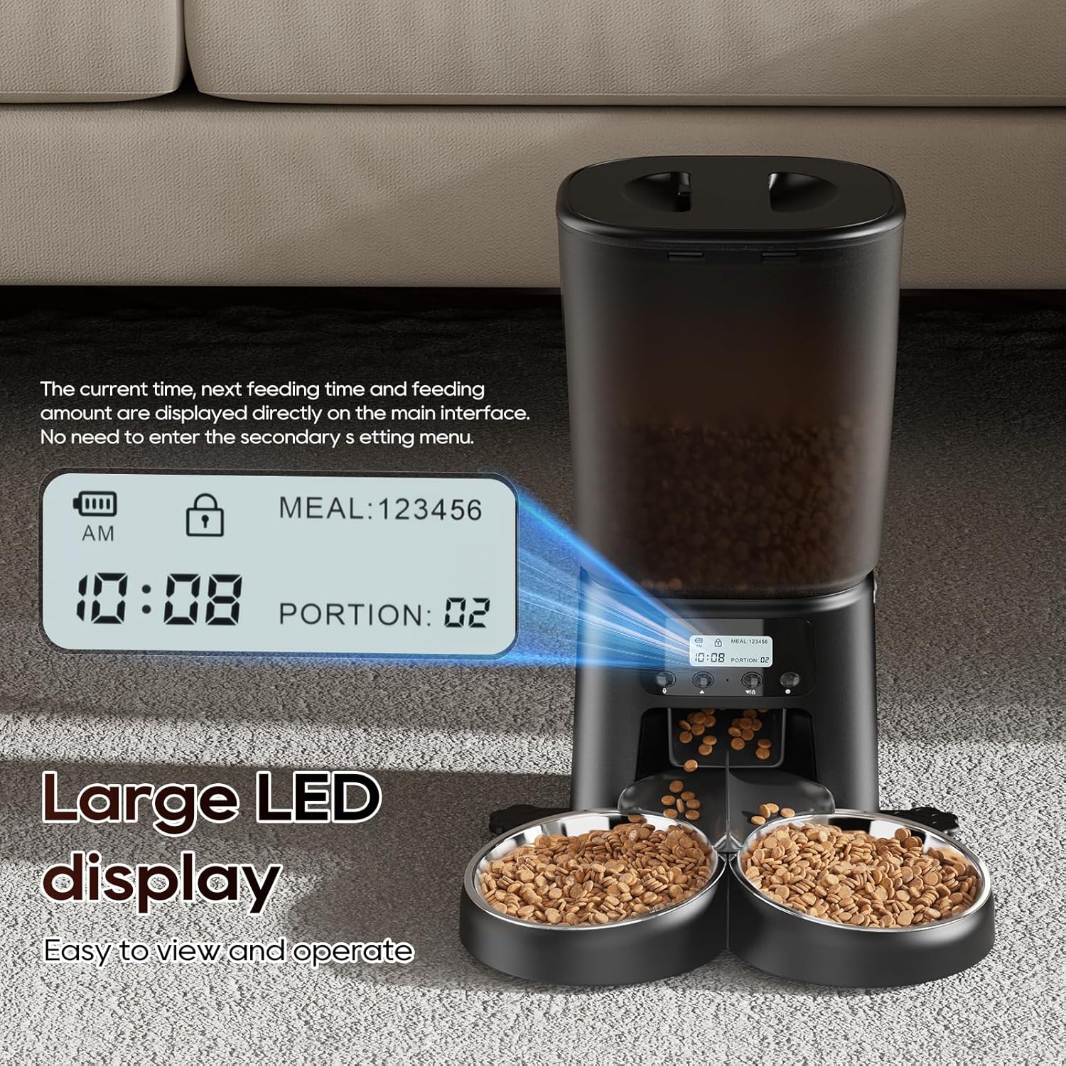 Automatic Cat Feeder for 2 Cats, 6L Timed Cat Dry Food Dispenser Dog Feeder up to 6 Meals & 30 Portions per Day,10S Voice Record,Flexible Schedule Timer Pet Feeder for Small Dogs, Black