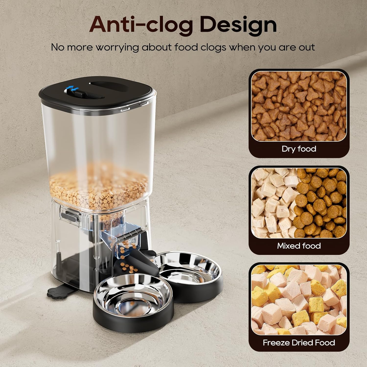 - 【Clog-Proof Food Dispensing】:Eliminate frustrating kibble jams! Our advanced cat feeder automatic features a precision-engineered auger system and vibration-free mechanism. It guarantees smooth, consistent food flow into the bowl during every automatic feeding cycle. Enjoy true peace of mind with this reliable cat food dispenser, freeing your hands and time.