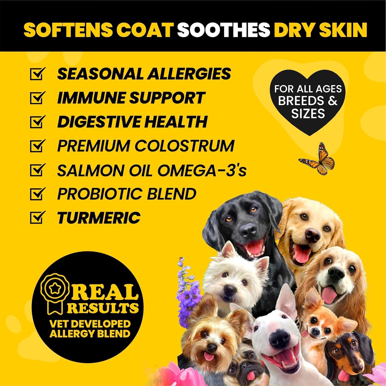 Dog Allergy Chews - Itch Relief w/Omega 3, Colostrum, Probiotics, Turmeric - Seasonal Allergy & Skin Relief - Anti-Itch for Dogs Licking Paws - Beef Flavor - 120 Soft Chews