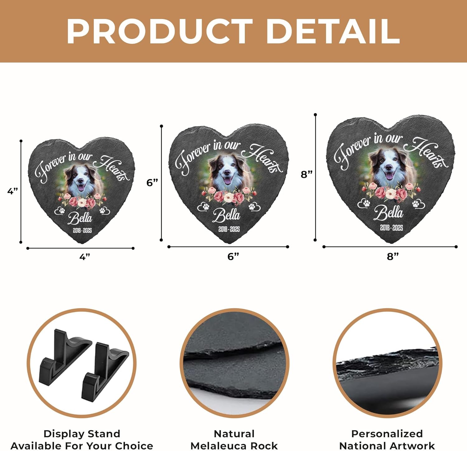 - WEATHERPROOF DURABILITY: Crafted from durable material with a thickness of 5mm and available in 3 sizes (4, 6, and 8 inches), this pet stone memorial withstands the elements, symbolizing your eternal bold.