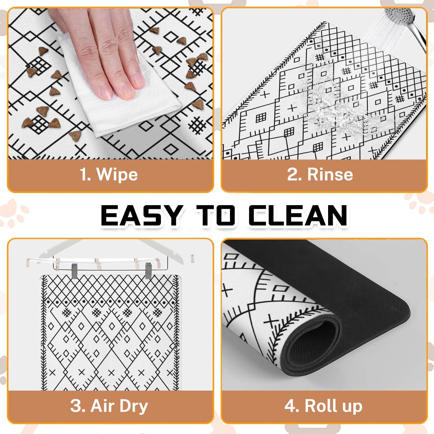 - 【Ultra-Water Absorbing & Mess-Free】Pet feeding mat is made of super absorbent material to ensure that spilled water will not penetrate the floor. Pet food mat can effectively prevent pet paws from getting wet and keep the pet's feeding area clean and dry.
