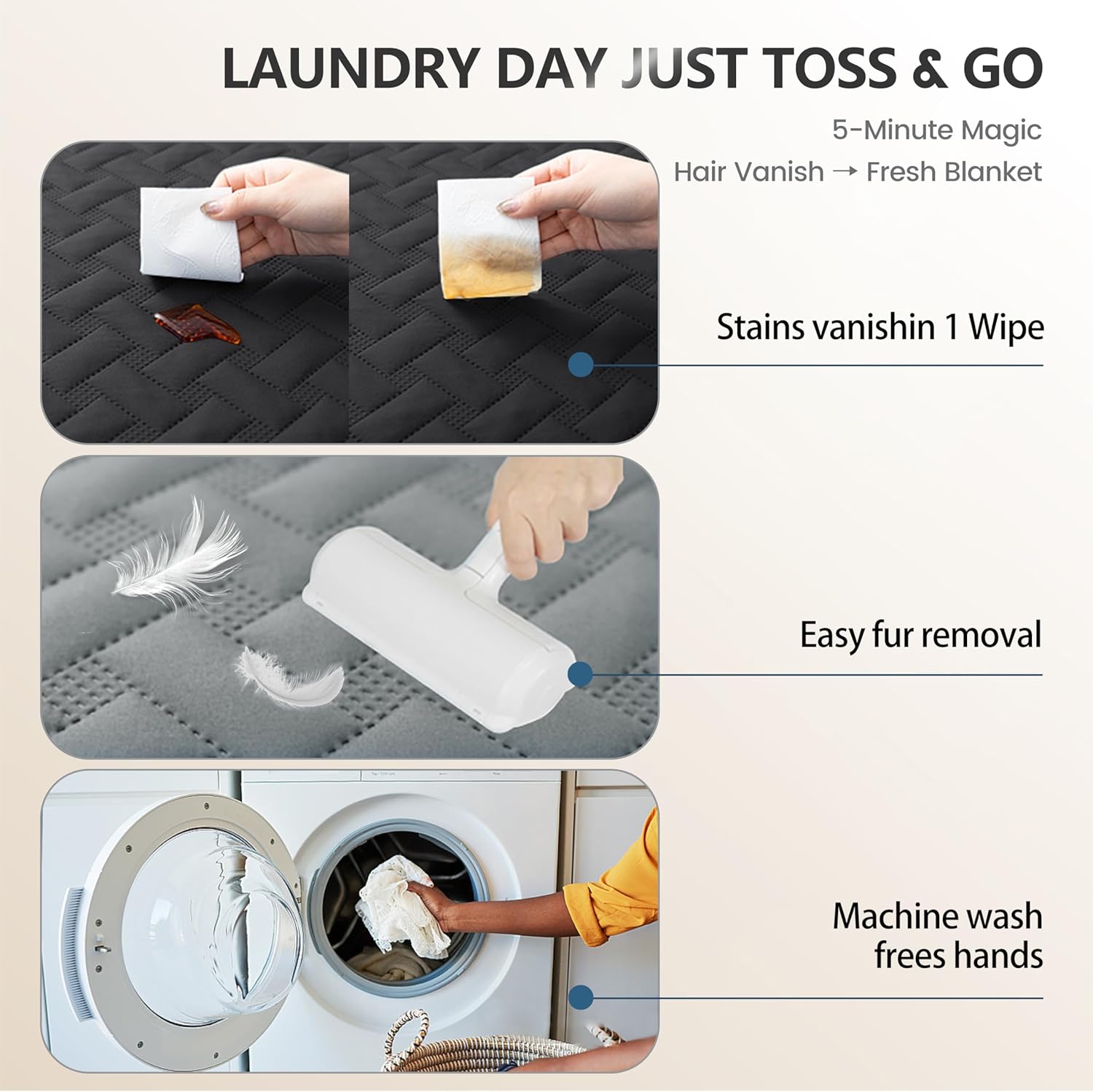 gogobunny 100% Double Sided Waterproof Dog Blanket Soft Pet Bed Cover Reversible Protect Furniture Couch Sofa Car for Puppy Cat (Dark Charcoal/Light Charcoal, 30x30 Inch (Pack of 1))