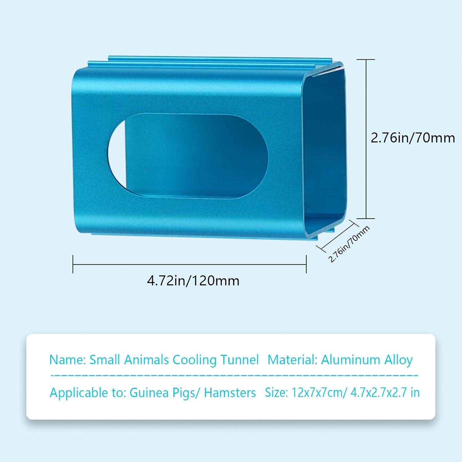 Hamsters Cooling Tunnel, Hamsters Instant Cooling Metal House, Aluminum Hanging Hideout Toys for Small Animals Dwarf Hamster Syrian Hamster Leopard Gecko (Blue, 4.7x2.7x2.7 in)