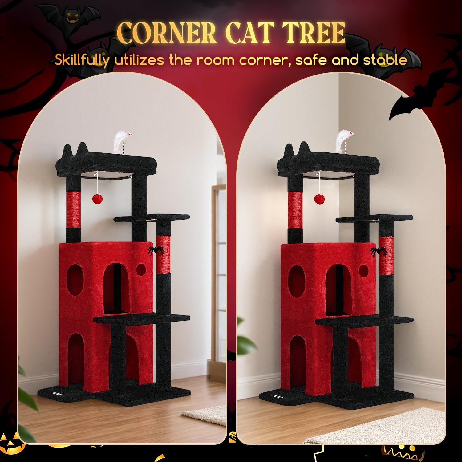 Globlazer Gothic Cat Tree Tower for Indoor Cats, 50-inch Goth Adult Cat Tree House for Large Adult Cats with Steps, Scratching Post, 2 Cat Caves, Dangling Toys, FC50, Blood-Goth