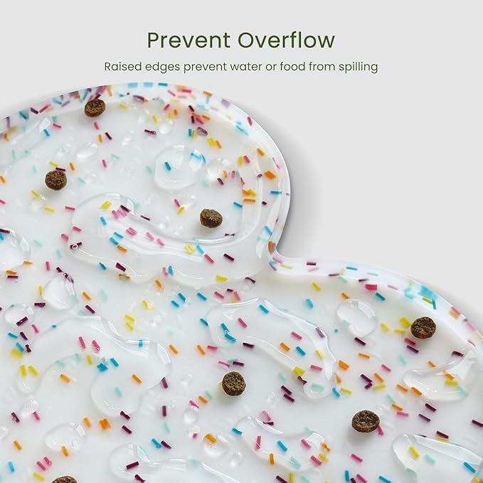 - Raised Edge - The high edge of this feeder mat keeps food and water within the tray and prevents spillage onto a clean floor. Keep your living space tidy and clean, say goodbye to messy floors, you just need to clean the dog bowl mat regularly.