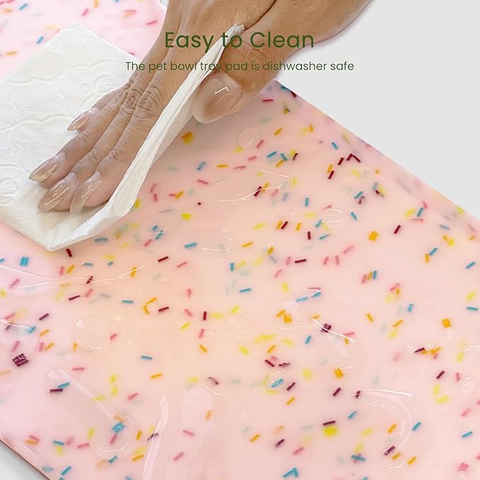 - Easy to Clean - The pet bowl tray pad is dishwasher safe, and this animal feeder mat is soft and stretchy and can be rolled up for storage or taken with you when traveling.