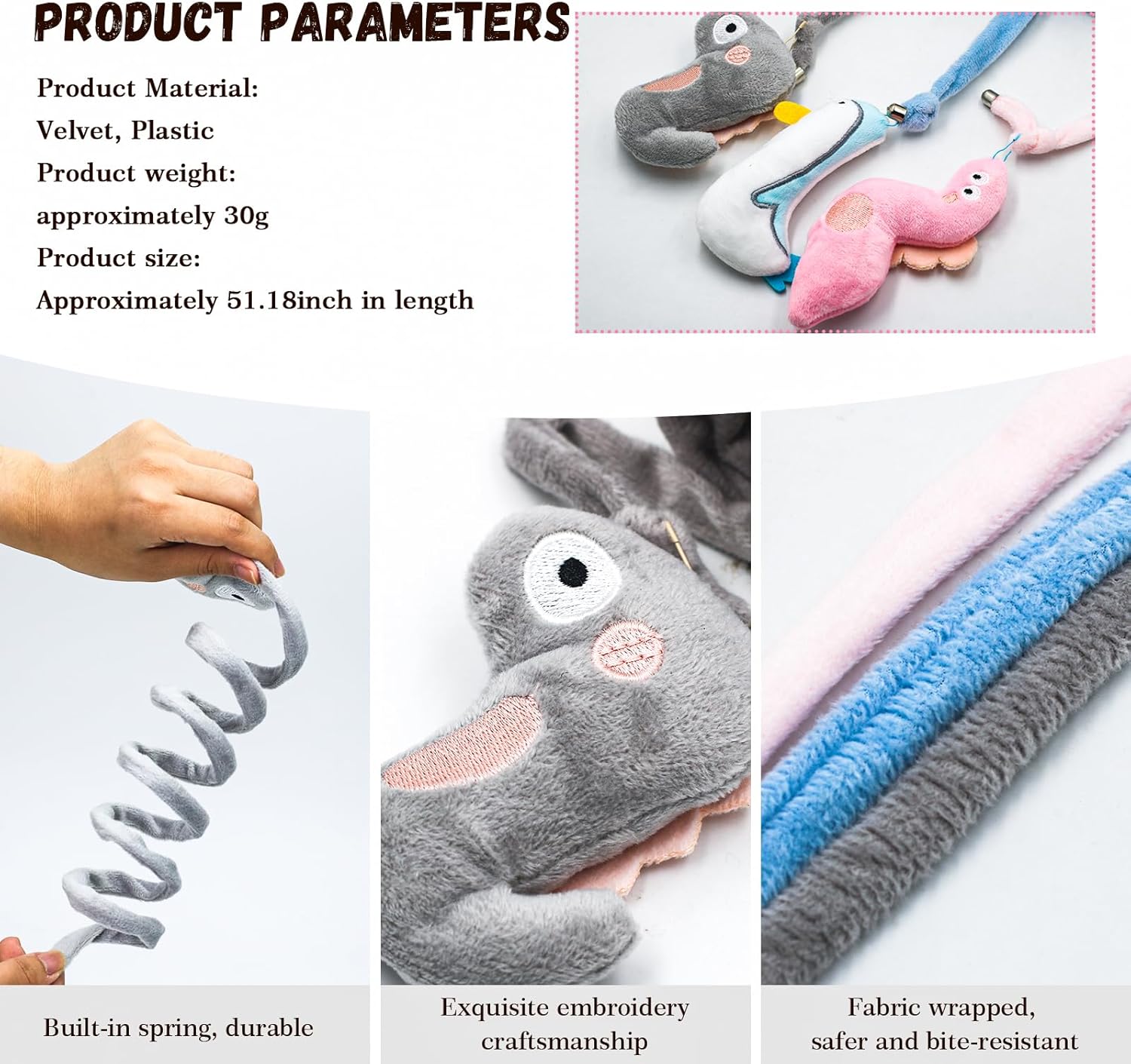 - 【Built to Last – Safe for Aggressive Players】Chew-proof fabric-wrapped spring withstands many times bites.Stickable seamless hooks included for secure attachment to doors, walls, or furniture.your kitten can claw and bite without the risk of detaching, ensuring long-lasting enjoyment from these bouncy fun cat toys.