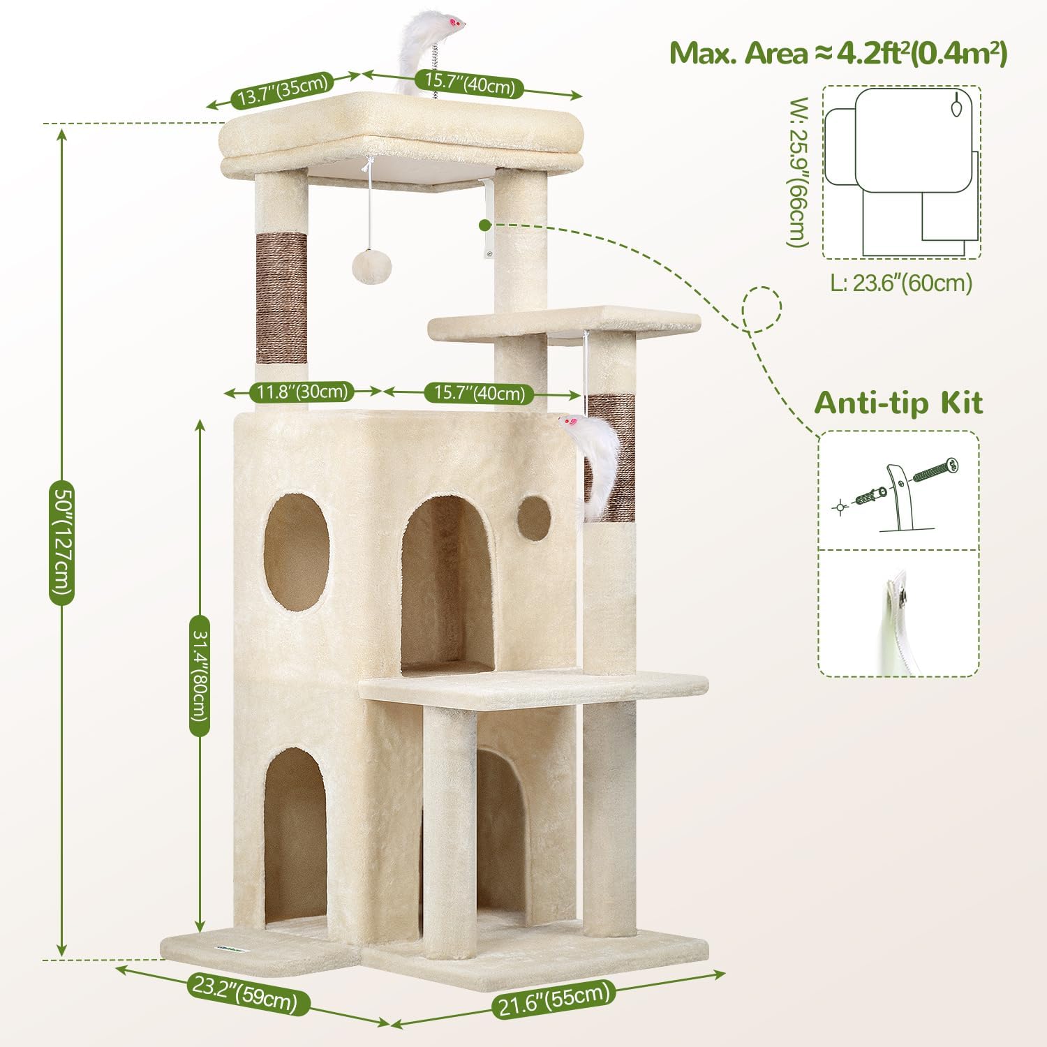 - Large Cat Tower Height: Standing at 50 inches, suitable for most ages and sizes of cats, providing ample space for their activities and rest