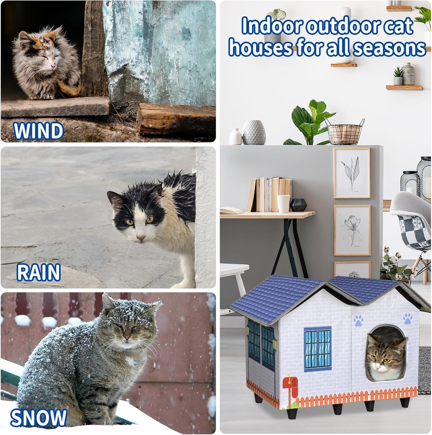 - 【EASY TO ASSEMBLE】---Our cat house is very easy to assemble in minutes, No tools required! It is perfect for the porch, garage or even barn- sheltering your kitty from outside temperatures. Our unique elevated cat house would make a perfect gift for any cat lover!