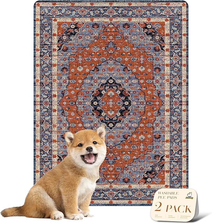 nunubaby Washable Pee Pads for Dogs, Stylish, Non-Slip and Leak-Proof Pee Pads. Reusable Potty Pads for Dogs for Crates and Floors.(Red/Multi, 18" x24")