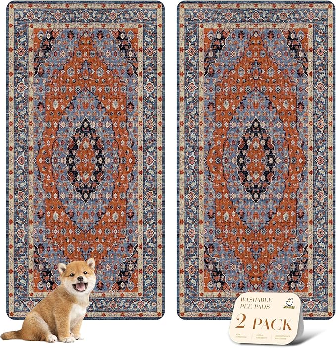 nunubaby Washable Pee Pads for Dogs, Stylish, Non-Slip and Leak-Proof Pee Pads. Reusable Potty Pads for Dogs for Crates and Floors.(Red/Multi, 36" x72")
