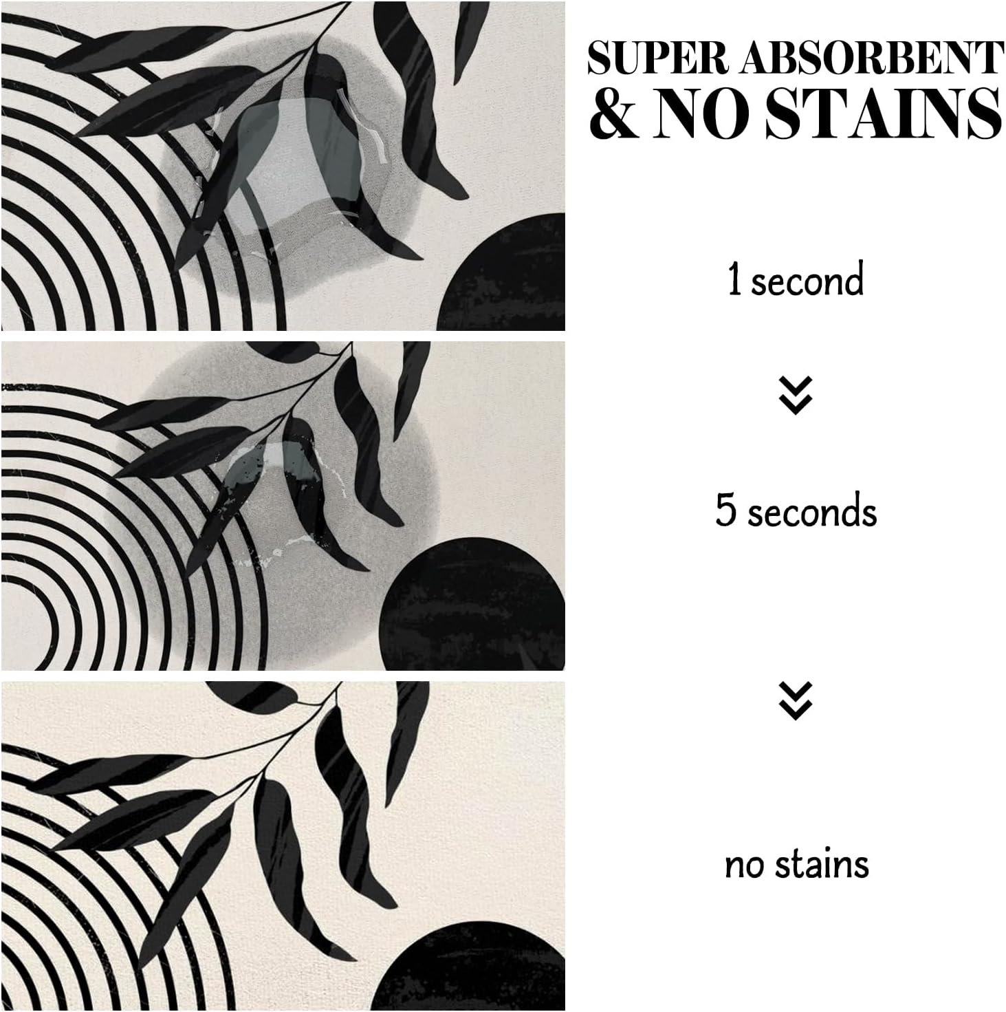 - Super Absorption: The dog mat for water bowl can absorb spilled water without leaving traces and dry quick, avoid wetting pet paws even for messy drinkers. And it does not attract pet hair like traditional silicone dog bowl mat.