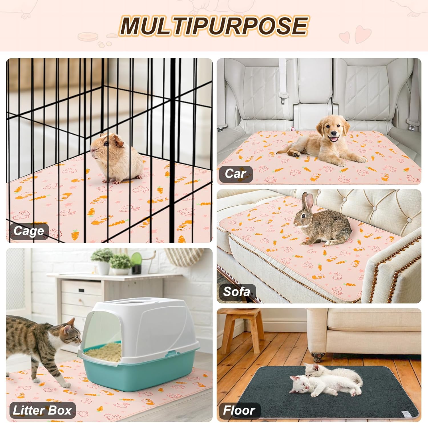 - Multi-purpose for Home & Travel – More than just guinea pig cage liners—use them in carriers, under litter boxes, or as guinea pig blankets washable during playtime. Whether at home or on the go, these guinea pig mats for cage washable give your small pet a clean, cozy space and help reduce stress in unfamiliar environments.