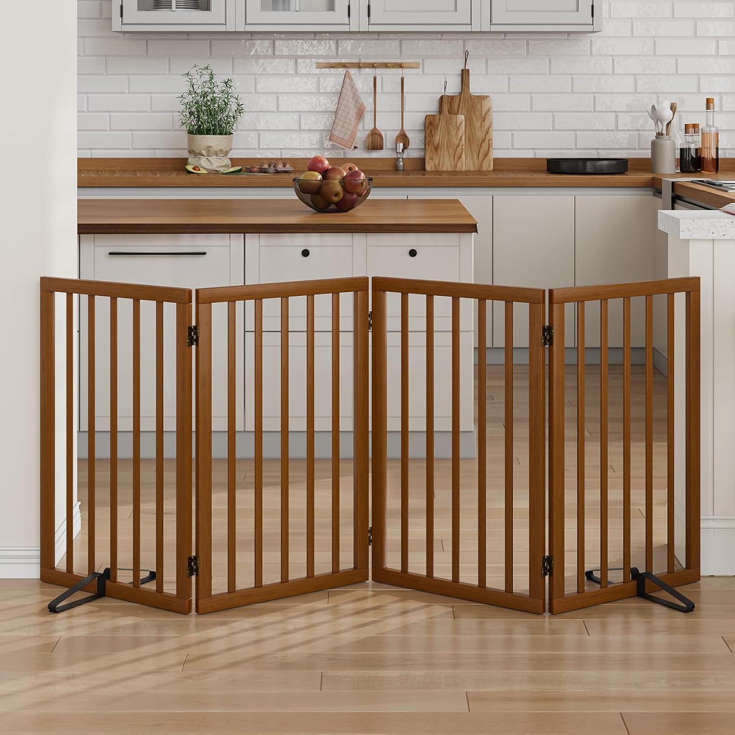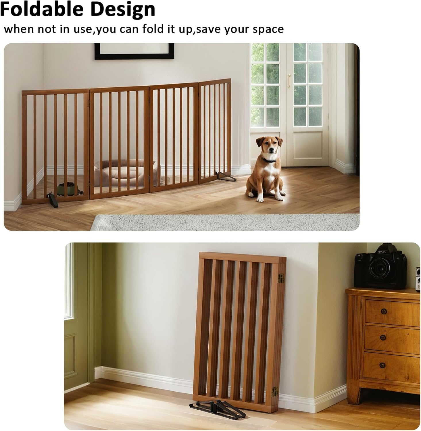 - Folding and Fully Assembled Design: this wooden dog gate quickly unfolds and folds like an accordion, flexible set up and convenient for storage. Completely assembled pet gate with gate feet support