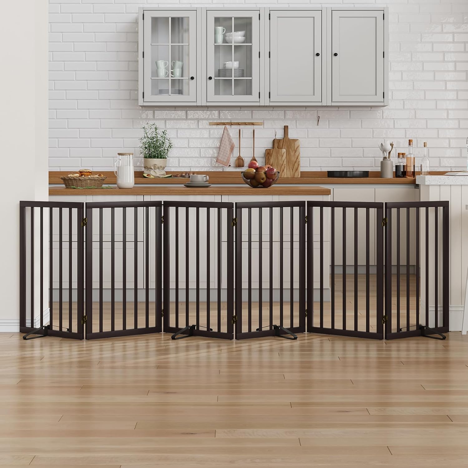 Dog Gate for Doorways 32" Tall Freestanding Dog Gate for Stair Foldable Pet Gate for Dogs Indoor (Brown,6 Panel)