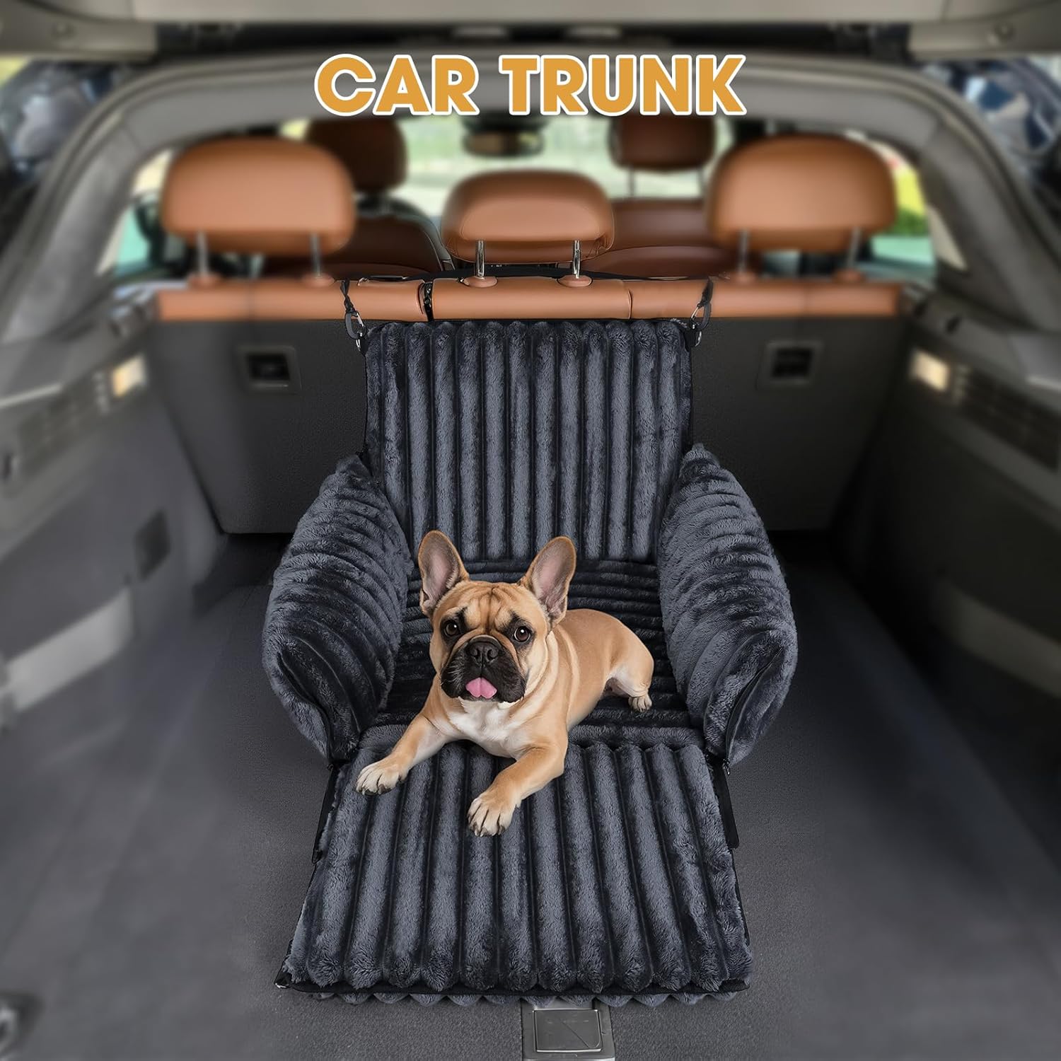 - 【Comfortable and Supportive Travel Bed】This pet booster seat features a thick, high-density foam cushion that provides joint support, ideal for long trips. The outer layer is made of short plush fabric that is comfortable to touch. Provide maximum protection and comfort in the front or back seat,the innovative front and rear heightening design providing added protection for your pet in an emergency.
