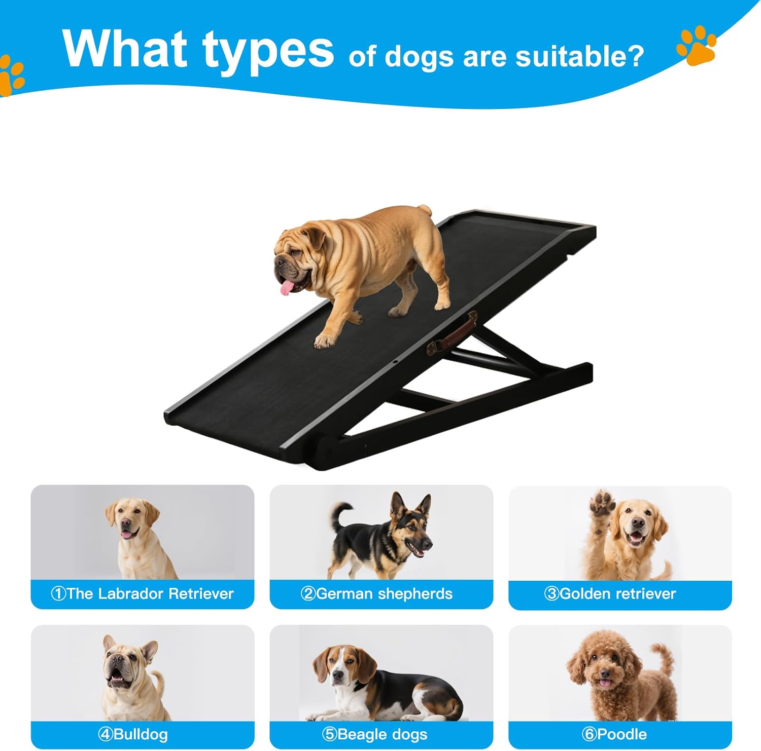 - 【Ultra-Stable Support for All Dogs】:Crafted with heavy-duty solid wood and reinforced steel joints, our dog ramp holds up to 200lbs effortlessly. Perfect for dachshunds, labs, or giant breeds like Great Danes, it protects your pet’s joints from jumping strain.
