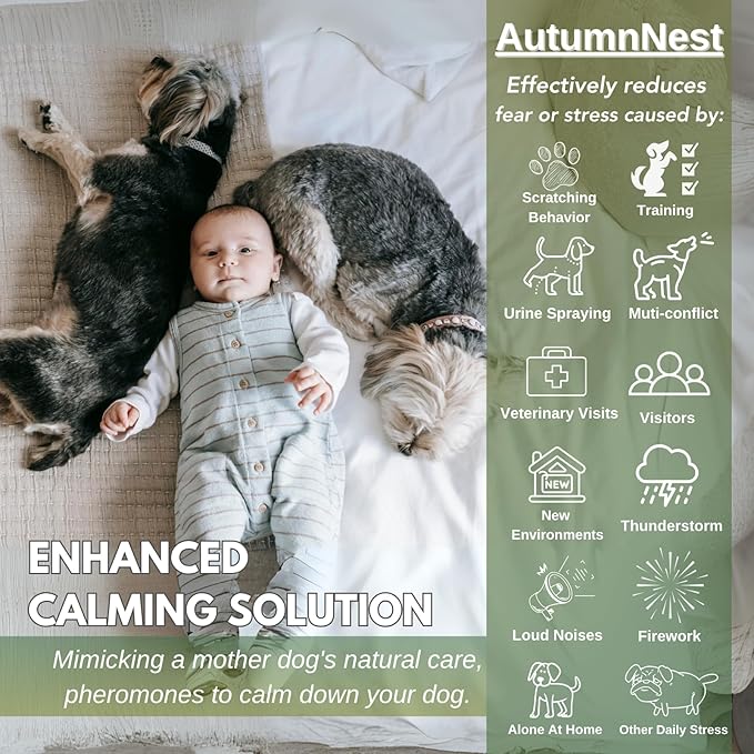 - 【Dog Calming Diffusers for Dogs – Complete Kit for Multi-Pet Homes】 AutumnNest dog calming diffusers for dogs kit includes 2 plug-in units and 6 refill bottles, offering a consistent calming environment for pets. Ideal for multi-pet households, it helps support emotional balance and relaxed behavior at home.